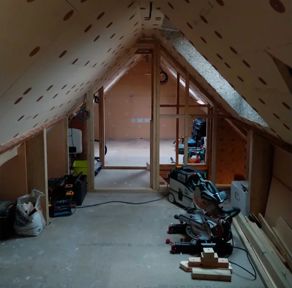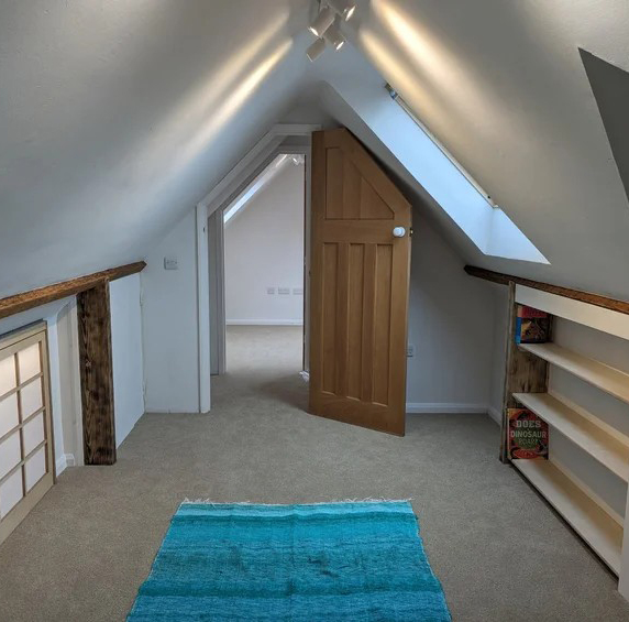 The project for this domestic property in Bath was to extend and improve. Since a move to working from home the clients required a reorganization of the layout to separate living and working spaces whilst allowing the property to grow with their family. We provided a full architectural service, taking all elements of design through to stage 3. The works were then split into two phases. Hawkland Architects took phase 1 to Stage 5, alongside Hawkland Construction, which has transformed the loft space into an office and additional bedroom. The existing roof build-up has been added to from the inside to improve its thermal performance whilst being sensitive to the in place solar panels. New roof lights were added for natural light into the new bedroom, with improvements made to existing openings to the new office. The second phase of the works will extend the living area with a rear extension, which will improve links to the garden and living areas whilst providing a seating and transitional space to enjoy the garden with a large opening and overhanging eaves.