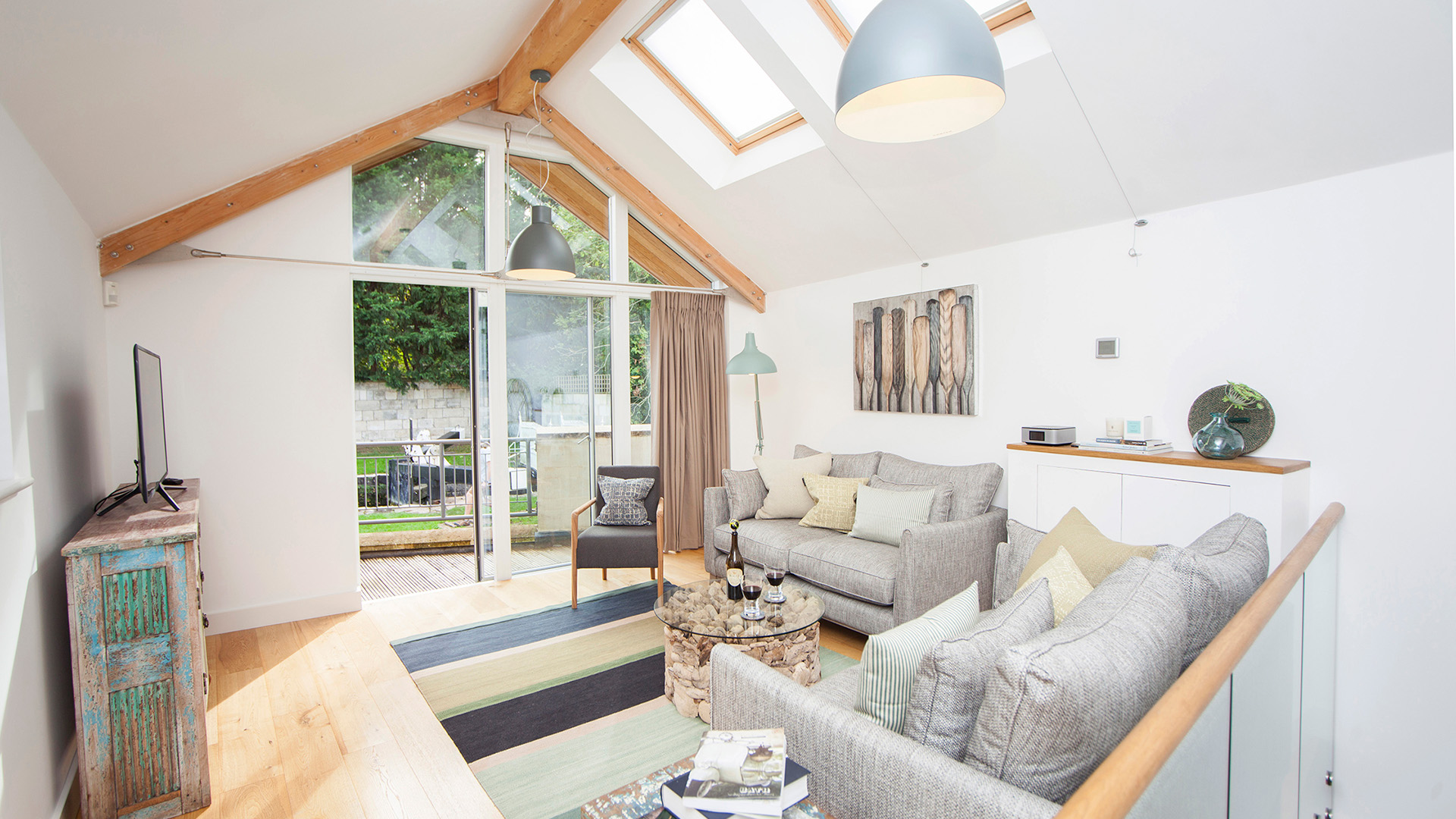 Four contemporary, sustainable terraced homes have been constructed on a constrained former garage workshop adjacent to the Kennet and Avon Canal in Bath. The design maximises the feeling of space with open plan living spaces. Balconies or Juliet doors on the upper floors of the houses take advantage of the south facing views over the lock and canal basin where leisure barges enliven the activity. Bedrooms and bathrooms are located at ground floor level behind original historic Bath stone walls. Large windows and rooflights bring in natural light.