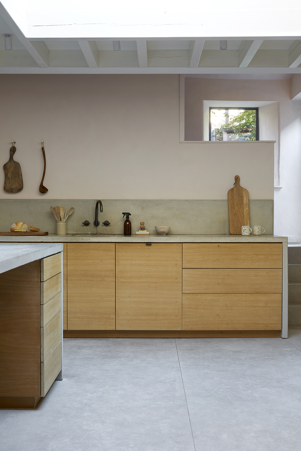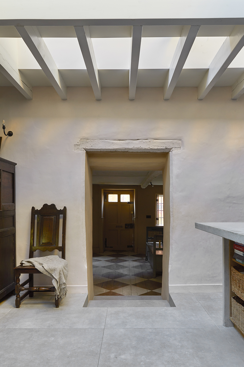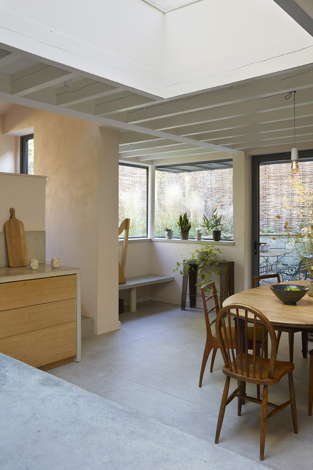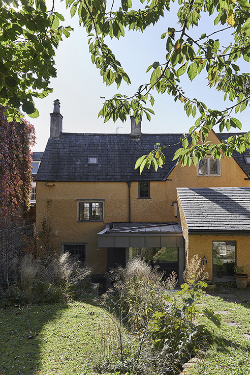 25 Middle Street is a beautiful Grade II listed terraced house in the centre of Stroud. The scheme provides a contemporary extension and total refurbishment of the exiting house to include a large family kitchen and dining space, utility and WC at ground floor; refurbished bedroom and bathroom in the attic space, and associated maintenance works to the existing fabric of the house. The principle concepts for the rear extension proposal honour the existing house and the context by proposing a volume that sits almost exactly on the original kitchen footprint; minimise harm to the existing house by playing a subordinate role; add value to the existing in terms of design, materials and use; to develop ways to connect the inside and outside realms of the house for maximum benefit of the garden. The roofline of the proposed scheme is subservient to the existing structures, defined by a flat, natural zinc, light grey metal roof that creates a clean line between new and old. New windows and sliding doors to the exterior courtyard will have minimal frame depths and coloured to match the roof. New windows in the existing outbuilding are to match those in the new extension in line with the design concept and refurbishment of this existing element. The proposal takes advantage of the level changes across the site linking house and garden with a light grey terrace or 'plinth' that mediates between these two levels and tones in with the roof and windows to create a single element. The 'plinth' creates a level access to the kitchen and a 'stage' to the existing courtyard.