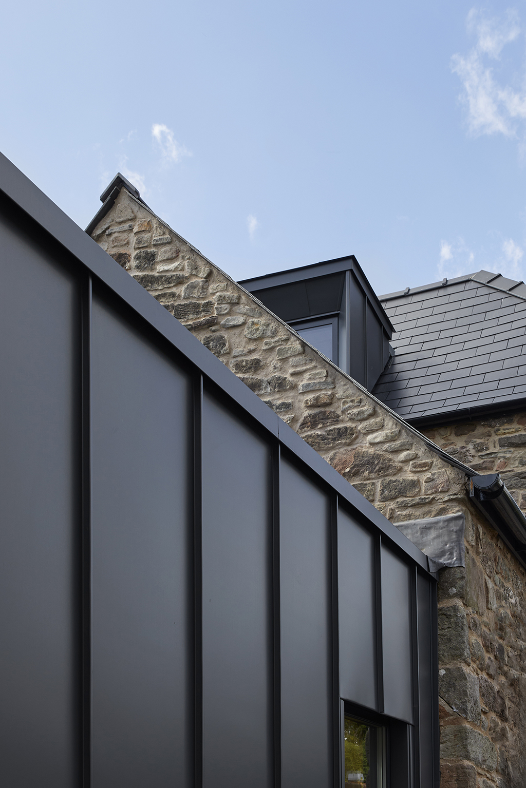 Moat House is an existing Grade 2 Listed house in the conservation centre of St. Briavels village, in the lower Wye Valley AONB. The proposal includes the removal of the existing 1990's conservatory and low grade dormer to the rear of the property, with the construction of a new, discreet, contemporary single storey zinc rear extension. The extension provides a new open plan kitchen, dining and living space with level access to the courtyard garden. Internally, the existing house is relatively untouched, yet the project cleverly creates a double height space over the kitchen, linking the first floor whilst bringing daylight deep into the otherwise darker, ground floor space. The strategy provides a new addition to the listed cottage which both contrasts and compliments the cottage's original features, allowing both the old and new to sit alongside one another harmoniously.