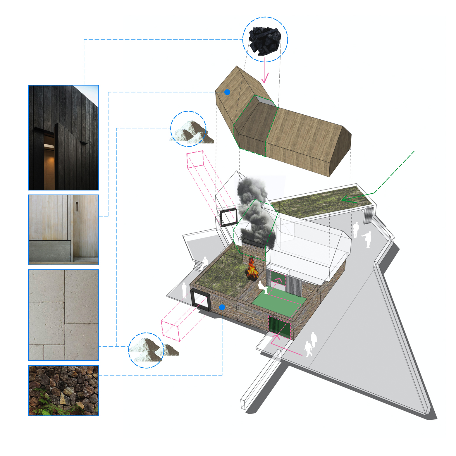 The Clearwell Orchard project is a development under the NPPF Paragraph 80 (ex Paragraph 79) exemption clause for a bespoke, energy efficient, rural dwelling. Inspired by the rich rural landscape that it will inhabit, and its vast industrial heritage, the project has two interconnected aspects including a new bespoke dwelling and the re-introduction of an ancient orchard. The house scheme, to be designed and built to Passivhaus standards, consists of a carefully planned entry sequence with open plan living, kitchen and dining, demarcated with curated furniture. With more space on the GF than above, the two bedrooms at FF are to take advantage of the orientation, woodland setting and carefully framed views. Externally, a large but discrete dedicated garage, machinery store and workshop is to be integrated as part of the works, carefully placed to limit views of any 'domestic paraphernalia' in the setting to the rear of the property. The traditional orchard within the landscape is an integral part of the journey and entry sequence through the site to the house.