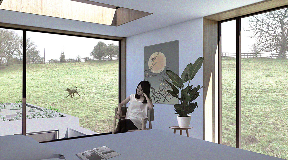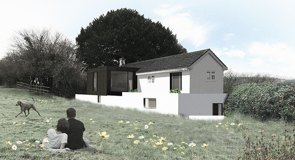 Yew Tree Cottage is an existing, remote, rural, detached cottage in St. Arvans, Monmouthshire. The property benefits from landscape aspects on all elevations, particularly the wide-ranging landscape views to the west. The house is in an AONB and sits within five acres of land with associated outbuildings. The design, which includes increasing the floor area and providing new external space, takes advantage of the level change across the site in order to limit the massing of the proposal in relation to the existing house. Inspired by the clients Japanese heritage, the level change offered a unique opportunity to open up the rear part of the existing house, and create a calming, naturally day-lit inner courtyard, connecting all ground floor rooms whilst still maintaining the scale and 'feel' of the original cottage. Likewise, a green roof on the single storey element reads as an extension of the sloping field behind. Currently out to Tender (Nov.21), the ground floor extension will be formed largely as an insulated retaining structure, with the first floor bedroom being constructed as a timber frame, well insulated and air tight. Materials are to be in keeping with the existing house, utilising a simple mix of charred timber cladding and painted render. Carefully positioned glazing will enhance the experience of this house and its connectedness to the surrounding landscape.