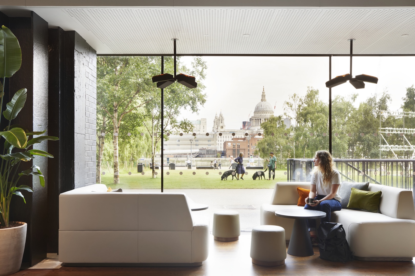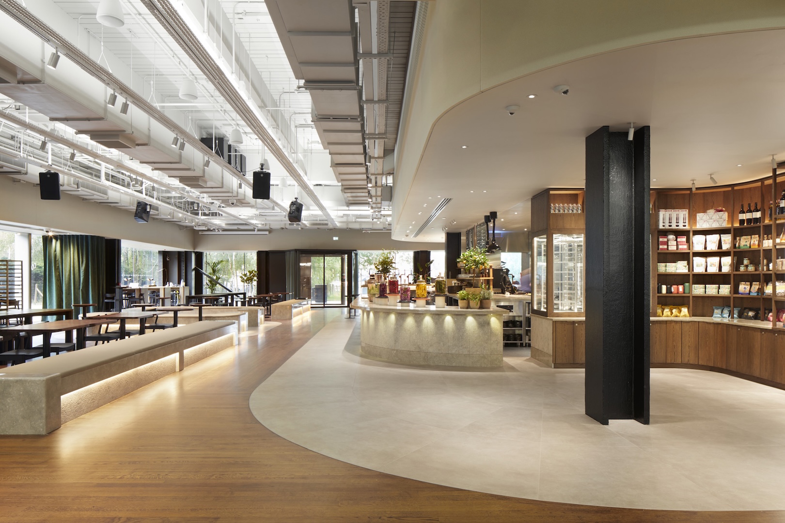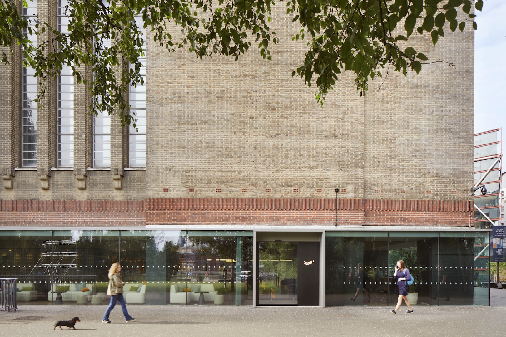 Holland Harvey worked with Tate Enterprises on the delivery of their new bar and cafe - a refurbishment of the original space designed by Herzog & de Meuron. Conceived as an extension of the public realm, linking two of London’s most iconic spaces, the Southbank and the Turbine Hall, via a new entrance onto Tate Modern’s lawns. The café is designed to celebrate accessibility and inclusivity - core themes of the organisation – to create an informal, playful setting that is welcoming for all, from morning until night. At its core, this is a place for food and congregation. The scheme encompasses a bar, servery, retail and coffee counter as the focus of the café. These functions are accommodated within one continuous counter expressed in bold geometric forms that echo the monumental structures of the original power station. Material choices explore themes of the circular economy, decarbonisation and social impact. For example, the Tate’s original oak floors have been sanded back and refinished. The existing Tate furniture restored and reupholstered to minimise the project’s embodied carbon. To reference the gallery’s Thameside location, salvaged shells have been mixed with waste coffee grounds from Tate’s roastery to create bespoke table tops by Spared. Social enterprise Goldfinger has recovered diseased ash from local councils to create beautifully crafted furniture, the coordinates of each felled tree have been stamped into each piece to reinforce the narrative of the product.