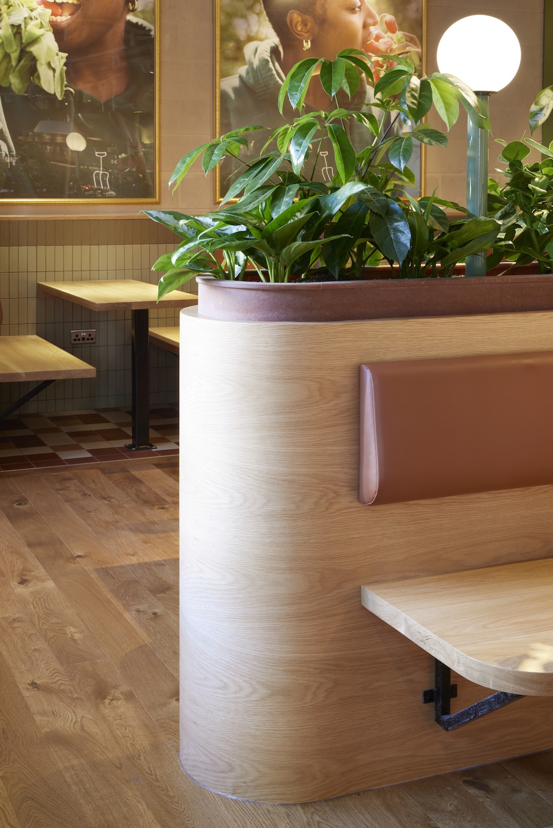 Our longstanding relationship with Farmer J spans ten restaurant locations across London, with several more in developmentâincluding their first international venture opening in New York City in late 2025. As design partners, we have evolved the Farmer J brand experience through each new location, proactively guiding their design towards a refined, sustainable aesthetic reflective of the quality and provenance of their food offering. Beginning with traditional briefs, our material palette has progressively embraced circular and sustainable products such as Smile Plastics, innovative seaweed-based lighting from Ty Syml, and bespoke joinery crafted by the social enterprise RAW Workshop. Our adaptability to diverse, often challenging spaces demonstrates a balance of technical expertise and contextual sensitivity. From reimagining heritage settings such as a former bank in Holborn or Victorian architecture in Bloomsbury, to creatively activating railway arches at London Bridge, office buildings in Farringdon and Victoria, and prominent retail spaces on Regent Street, our design approach consistently respects and enhances local character. Through thoughtful evolution and sustainable innovation, we've supported Farmer J in using design as a powerful expression of their brand values.
