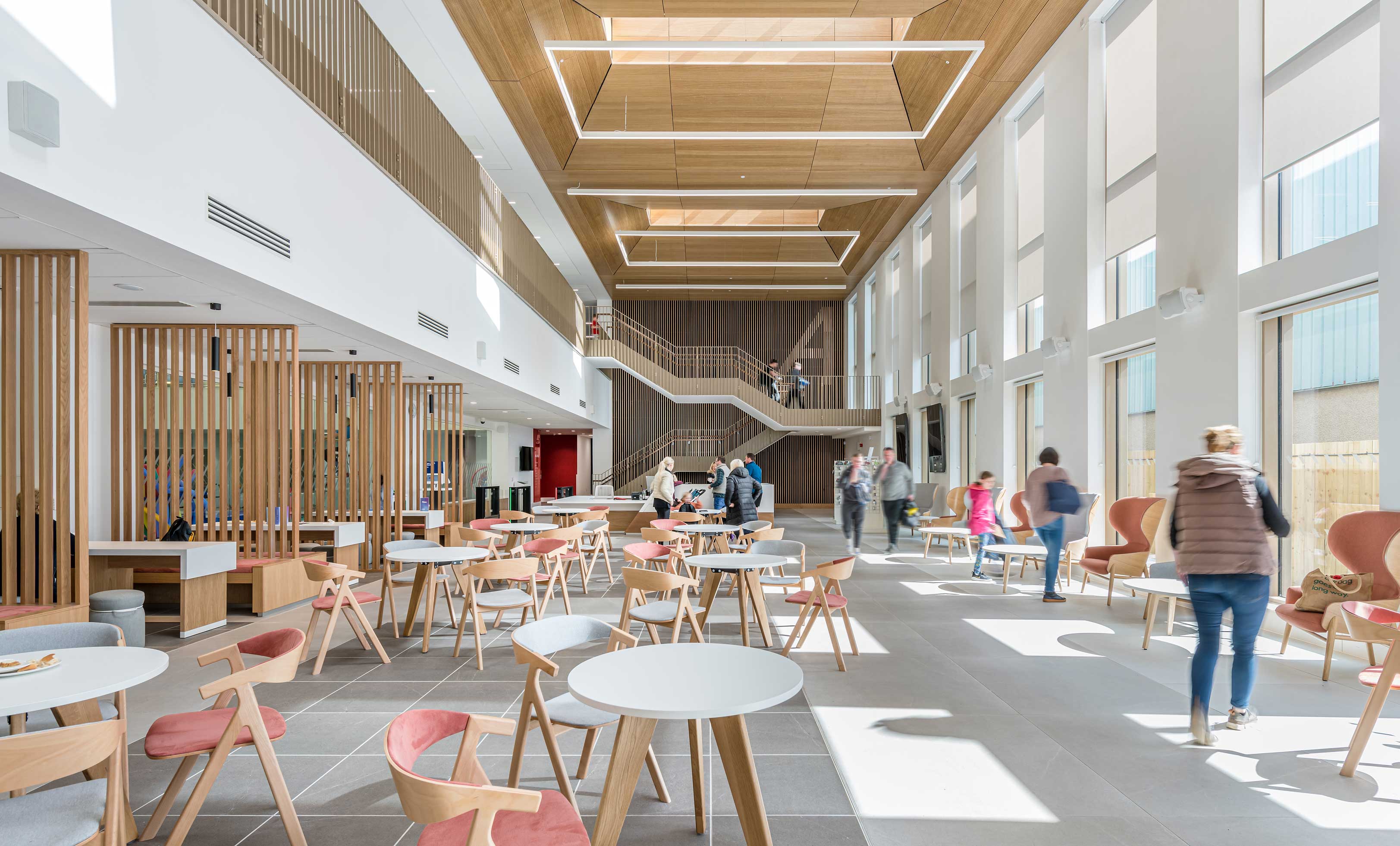 The Allander Leisure Centre had been a recreational community hub for East Dunbartonshire for over 40 years. For a similarly long time, Kelvinbank Resource Centre in Kirkintilloch had been providing daycare services for adults with learning challenges, mental and physical disabilities. The new Allander seeks to bring these institutions together and provide an environment that serves the public with modern, state of the art facilities. It will also provide a stimulating environment which delivers the experiences necessary to care for people with various conditions. Both aspects are designed in conjunction to enhance the health and wellbeing of the community.