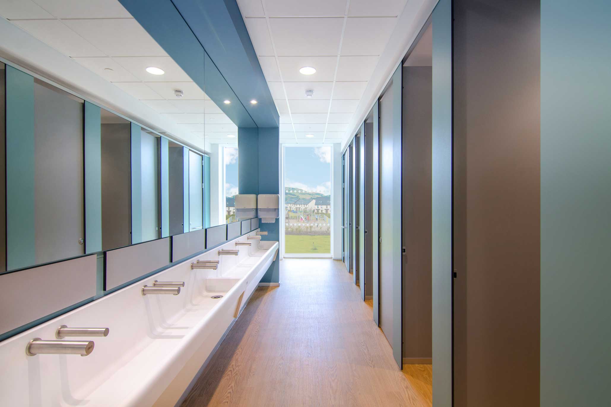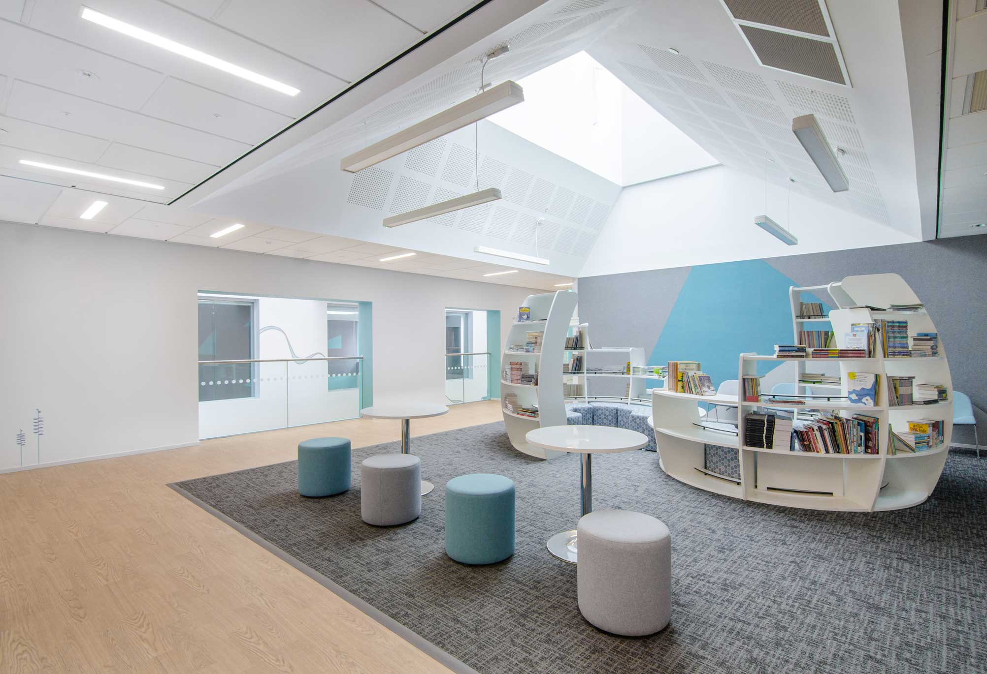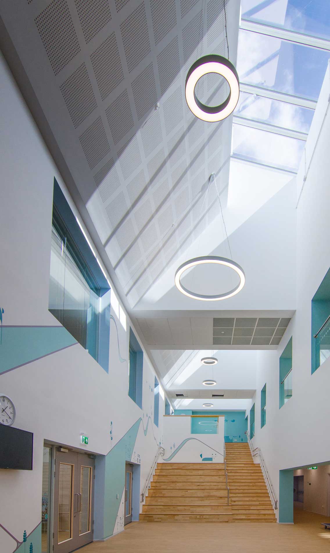 Frogston’s building design draws inspiration from the undulating landscape of the nearby Pentland Hills. It houses a 2-stream primary school and Early Years Centre, expandable to 3 streams. Holmes Miller played a key role in the inspiring learning spaces team set up by City of Edinburgh Council with educators and managers to create an innovative teaching model. The school's layout links social and play areas, replacing traditional corridors with adaptable, light-filled spaces. Outdoor spaces align with Curriculum for Excellence, prioritising greenery, water features and a focus on creating useful, educational, and stimulating spaces for primary school students.