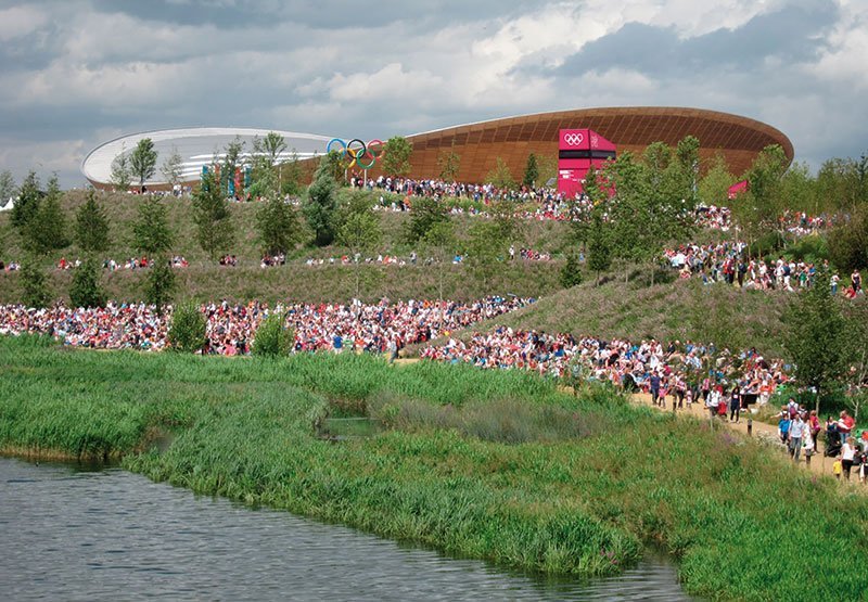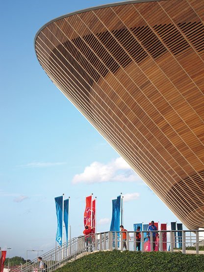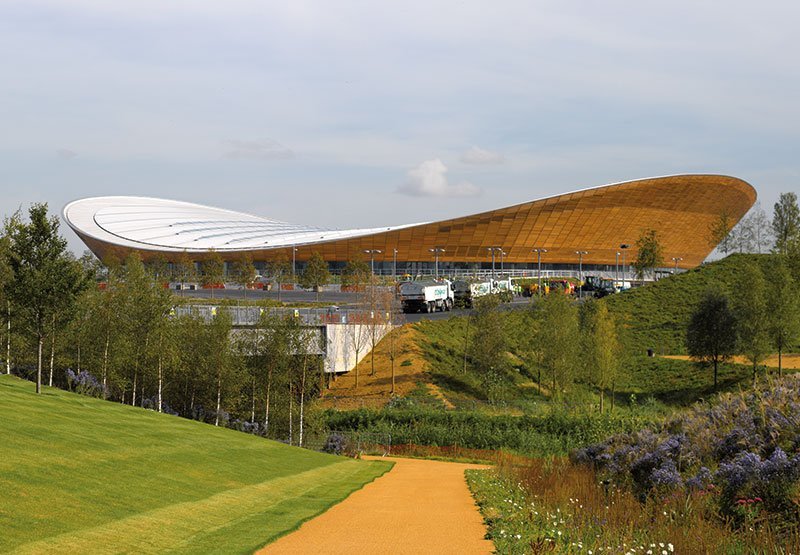 The building forms an elegant response to the brief by using simple materials in an efficient manner to meet the client's aspirations within the available budget. Cycling inspired the concept for the Velodrome. The bicycle is an ingenious ergonomic object that is honed to unrivalled efficiency. We wanted the same application of design creativity and engineering rigour that goes into the design and manufacture of a bicycle to manifest itself in the building; not as a mimicry of the bicycle but as a three-dimensional response to the functional requirements of the venue whose distinctive form has emerged from an integrated design team approach which focused on the performance and efficiency of every aspect of the building. The Velodrome contains 6,000 seats in both Olympic and Legacy modes and responds to both contexts in an appropriate manner with minimal transformation. The upper and lower seating tiers are split by the main public circulation concourse which forms the main point of entry into the arena and allows spectators to maintain contact with the action on the track as they circulate around the building. The concourse is fully glazed to allow views both into and out of the building. It also helps to visually separate the Western Red Cedar clad upper bowl from the ground floor back of house accommodation which is largely hidden behind the landscaped earth berms that form a visual plinth at the East and West ends of the building. The Olympic Delivery Authority set a number of sustainability and material targets; through careful consideration and integration of the architecture, structure and building services the design has met or exceeded these requirements. Work on the competition scheme began in May 2007 with announcement of the results made in August 2007. Work started on site on 23rd February 2009 and was completed ahead of programme and on budget on 13th January 2011.