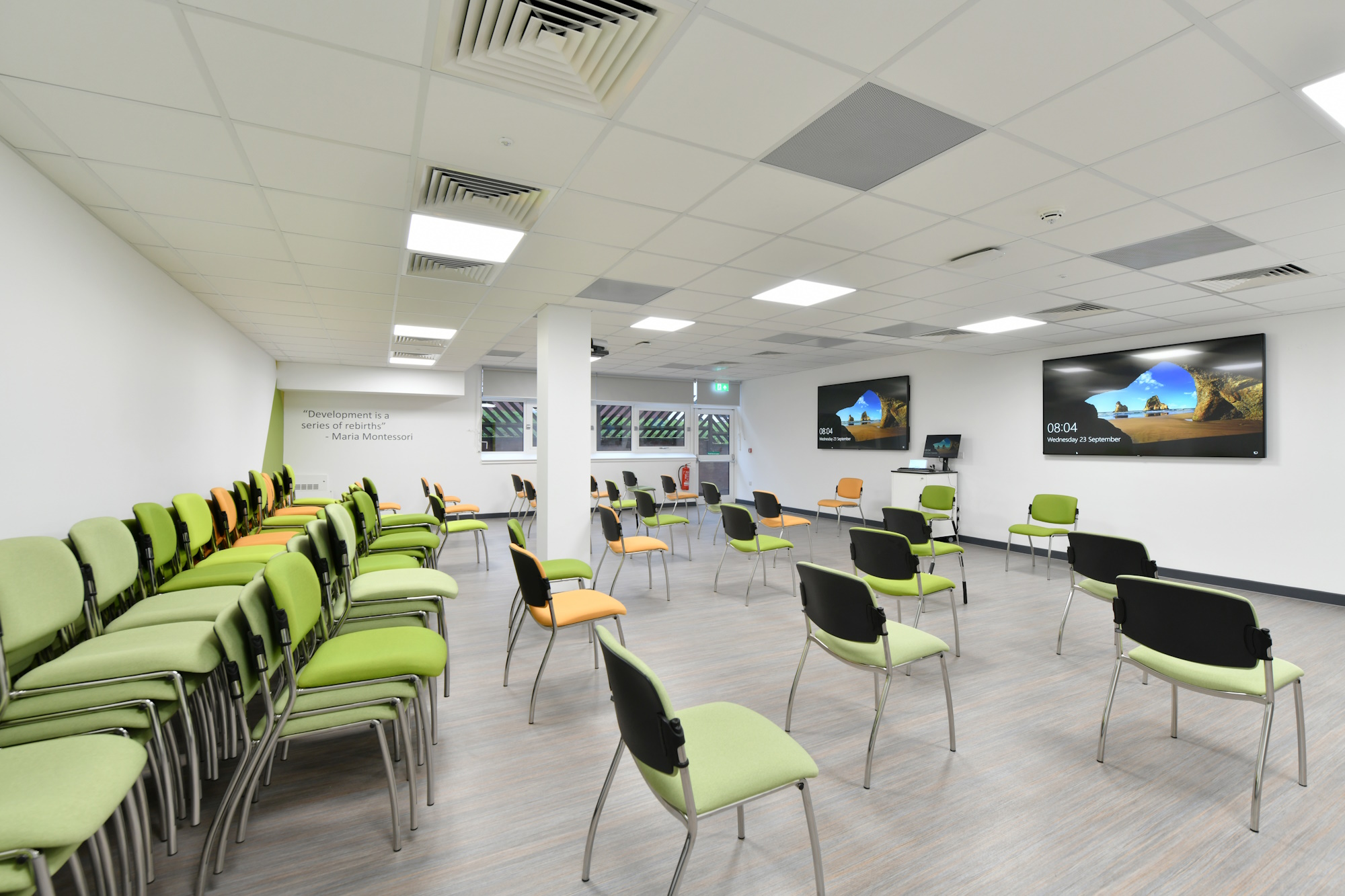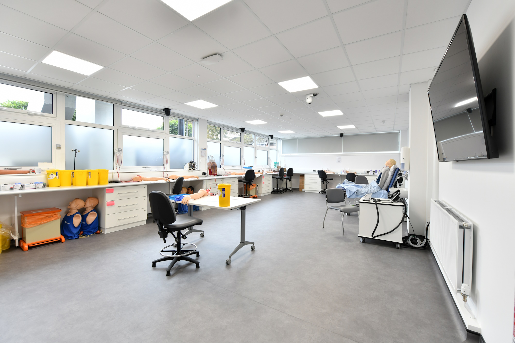 Ingleton Wood’s healthcare design team were appointed firstly by the NHS Trust as Lead Architect and then novated to the Contractor, under the SCAPE framework to undertake the design of a new Clinical Education Centre on the Bedford Hospital site. In 2019, we were asked by the NHS Trust to develop a new Education and Training centre, in a redundant part of the site housing former mental health in-patient bedroom accommodation. This building had laid vacant for some time and we were appointed as Lead Consultant to undertake the refurbishment of the Basement to form the new Medical Education and Training Centre. We designed the new facility to meet HBN Clinical standards, comprising a clinical simulation suite, clinical skills laboratory, large seminar room, meeting pods, classrooms, administration areas and student break-out spaces. We held extensive stakeholder workshops to inform the design and to ensure that the students had the best learning environment. Furthermore, we incorporated work with an A/V specialist to ensure full compatibility throughout with interactive screens and fully controllable LED lighting. Our interior design-led scheme was deliberately contemporary and was handed over on time and on budget in September 2020 to much acclaim.
