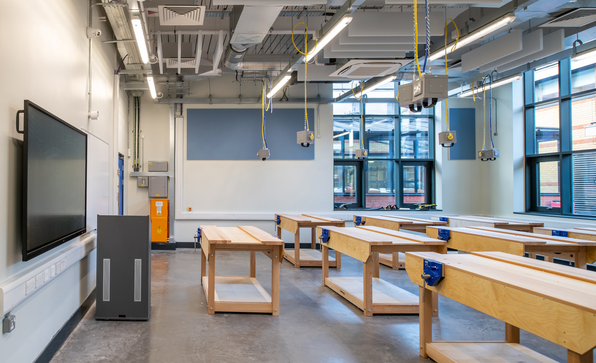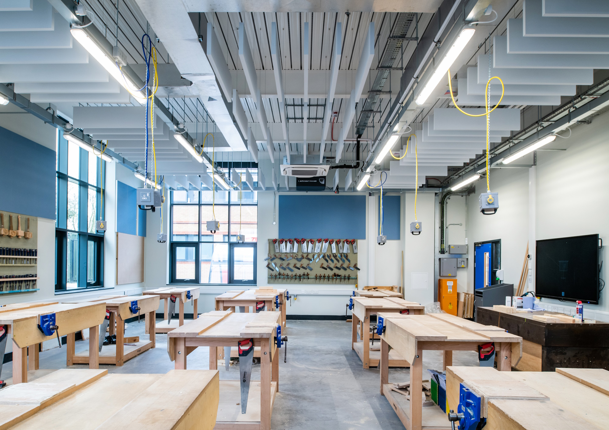 Ingleton Wood were appointed to support Chelmsford College with full multidisciplinary design services, for the provision of a new state of the art construction centre. The new construction centre replaced the existing temporary and lightweight rub tents, which were used for the delivery of construction related curriculum at the College. The design incorporated new carpentry workshops to the ground floor and an additional multifunctional workshop to the first floor, as well as flexible general purpose teaching classrooms, which could be opened up and used as one larger conference space. The design also incorporated a large external canopy, which enables students to complete curriculum activities outside, without being disrupted by inclement weather. Ingleton Wood provided a multi-disciplinary service, including all architectural, planning, civil and structural; mechanical and electrical design for tender and procurement delivery, contract administration and CDM services from inception through to completion. Ingleton Wood’s sustainability team were appointed and managed the process of the building achieving BREEAM very good and an EPC rating of A.