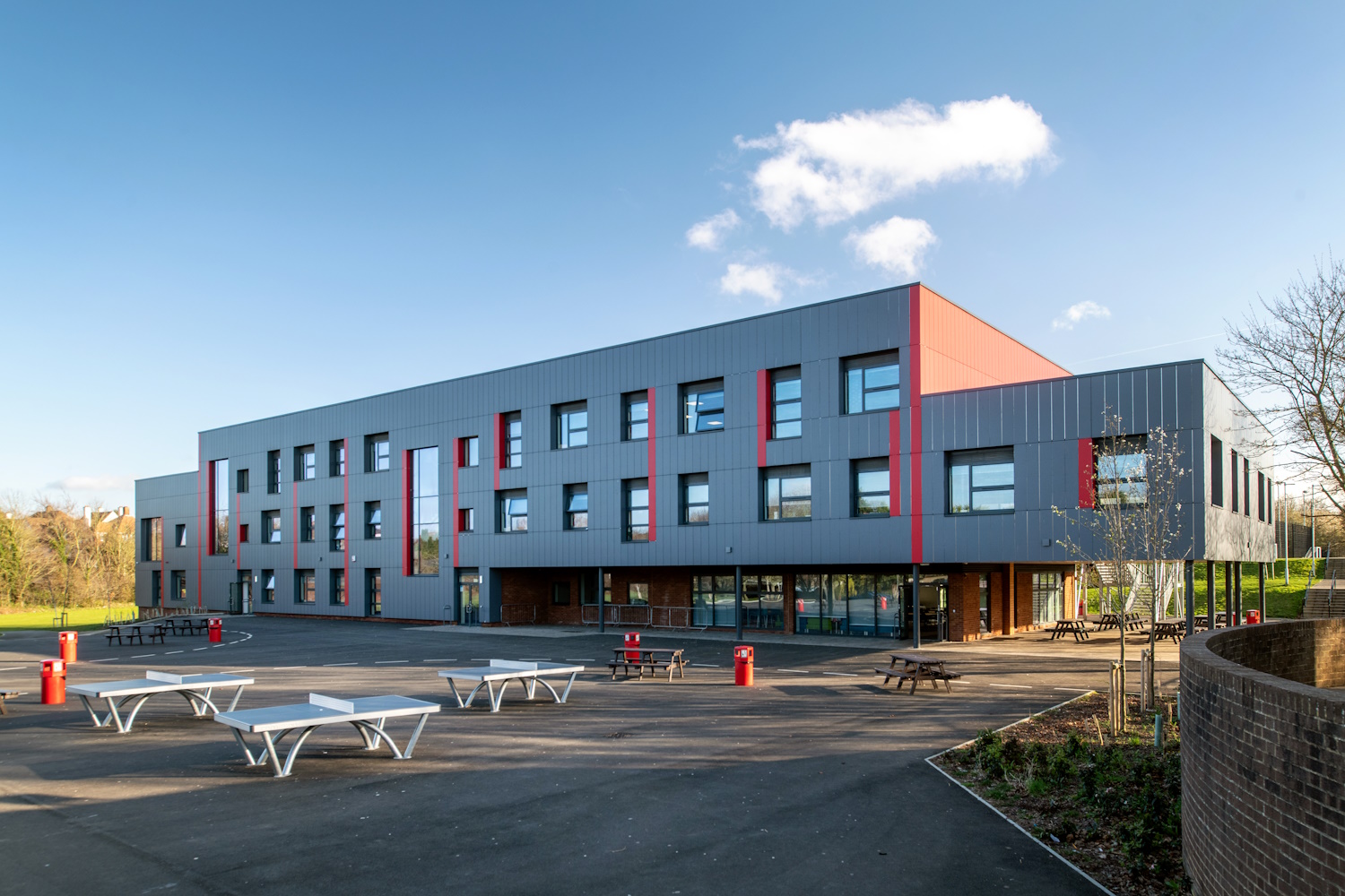 Ingleton Wood LLP were engaged by Aletheia Academies Trust to complete a suite of surveys and assist with the preparation of Department for Education (DfE) funding applications. Since forming this partnership, we have been successful in obtaining millions of pounds of funding on behalf of the Trust as well as assisting them with managing condition related projects now that they receive School Condition Allocation (SCA) funding. This project commenced with the condition assessment of an existing end of life accommodation block at Saint George’s Church of England School and the successful receipt of funding through the Condition Improvement Funding (CIF) route for its replacement. The project scope was further increased when Kent County Council approached the Trust to expand the School with monies available to build additional accommodation from developer S106 contribution for basic need. Following a number of feasibility and option appraisals, Ingleton Wood assisted the School with scope change requests to the DfE to engineer a solution to deliver the required accommodation for the condition replacement and expansion, including suiting specialist subjects within the existing school buildings. The key driver was to maximise the investment to ensure that the project could deliver the required accommodation whilst creating inspirational educational facilities in line with the DfE standard output specifications and aspirations of the Trust. Ingleton Wood were engaged to provide a multi-disciplinary consultancy, including design, procurement, contract administration and project management through to completion. Ingleton Wood worked closely with the School and main contractor on a complex project which had multiple phases on a live school site, delivering a legacy project for this expanding and successful secondary school.