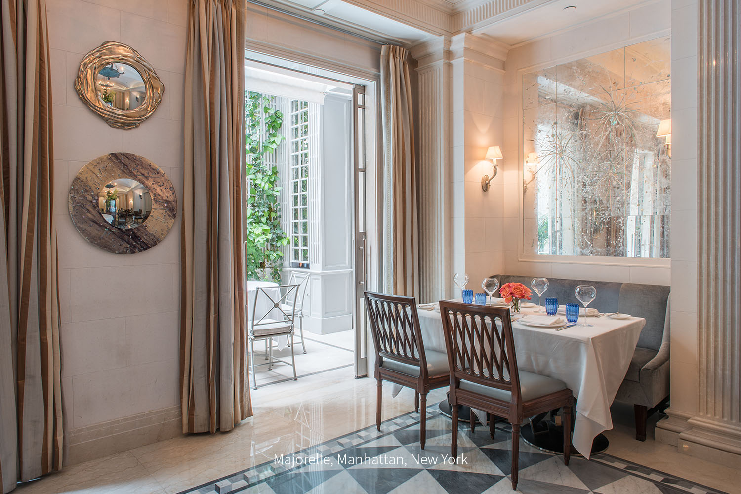 Just off Madison Avenue, and located on New York's 63rd Street, the Lowell Hotel had little or no public space prior to its refurbishment. By reconfiguring the ground floor and basement, a new Lobby, Bar, Restaurant and resident's Club Room have been created, as well as new basement kitchens and staff facilities. The classically conceived plan form creates a series of interlinked spaces with axial vistas leading guests through the hotel from the street entrance to the newly created terrace at the rear. Working with international contractors from France, Germany and the US, each of the spaces is given its own visual identity to create an environment where guests can eat drink and relax in the style of a grand country house.