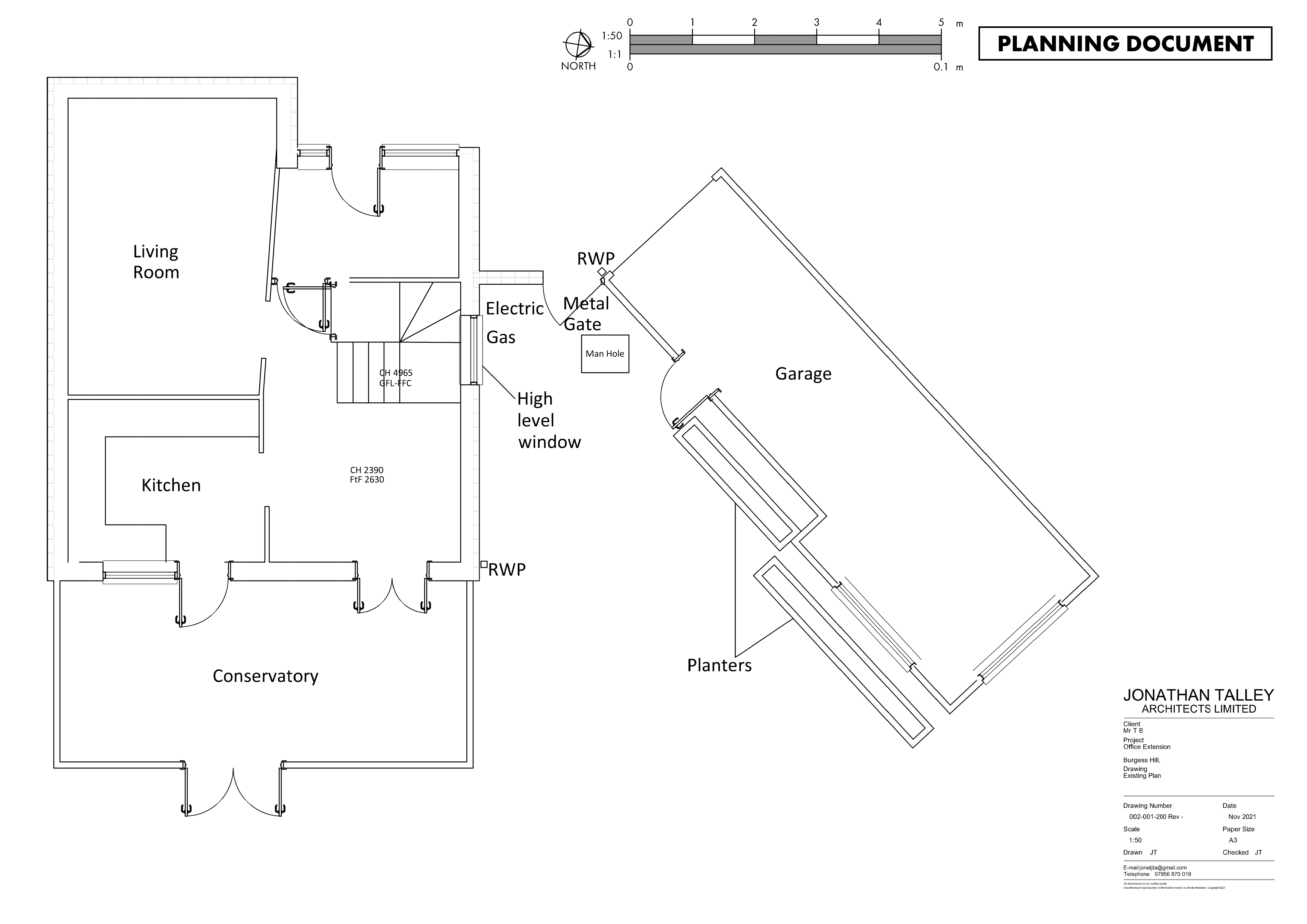 The client approached Jonathan Talley Architects Limited to provide architectural services to gain planning approval for an extension to their existing home based in Burgess Hill. The extension was proposed to be for a home office, which would then also be used in the future as a garden room looking out onto the garden. JTA undertook a survey of the existing house and garden area and returned a series of concepts for review with the client. Upon selection the design was developed to a suitable pack of drawings to be submitted to Mid-Sussex Council for a householder Application. This application was approved with minimal conditions, well within the statutory timeframes enabling the works to progress sooner. The next stage of the project is being discussed.