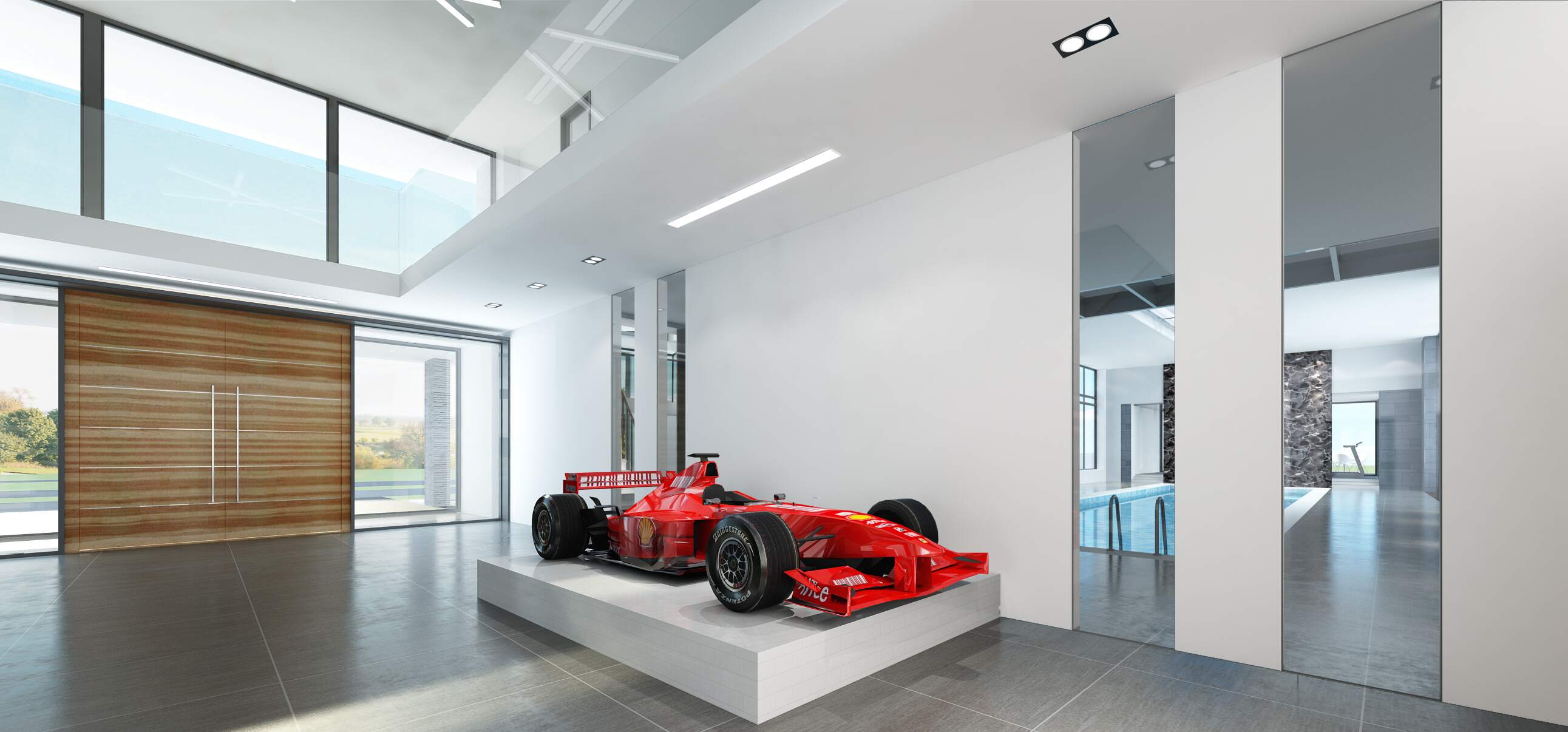 Newton Park, 'will set a benchmark for contemporary architecture in the region', according to the planning case officers and planning committee councillors who oversaw the application and voted unanimously in favour of the proposals. Our design, based on modernist principles, incorporates a considered layout with a defined north south and east west axis and clear views in these directions. Set over four floors, the organisation starts at the front door, behind which sits a central atrium. The atrium connects and links the family, entertaining, leisure, sleeping and work areas, making them easily accessible. The elevational treatment contains strong horizontal lines which mediates the contextual extremes of the rolling countryside and nearby woodlands. The south facing elevation is light with expanses of glazing, whilst the north elevation provides a solid buffer to the entrance approach. At 22,000 square feet, incorporating indoor and outdoor pools, sunken garaging for 22 cars, and 8 bedroom suites, Newton Park will be one of the largest contemporary dwellings constructed in the Midlands. Construction is scheduled for the summer 2016.