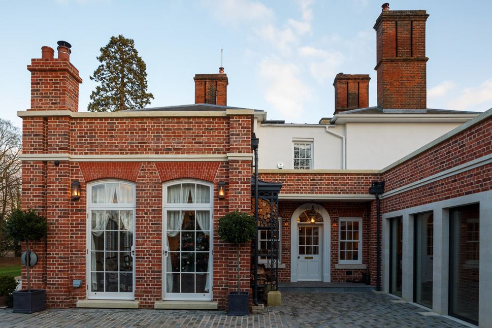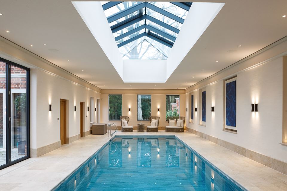 This Regency Villa was extended with a new orangery to the Kitchen and boot room and then a contemporary extension to provide an indoor swimmingpool and changing rooms with a glazed cloister. the below we also added a full basement with a cinema room, games room and gym. The house also had repairs and a new garage matching an orogianl garden outbuilding.