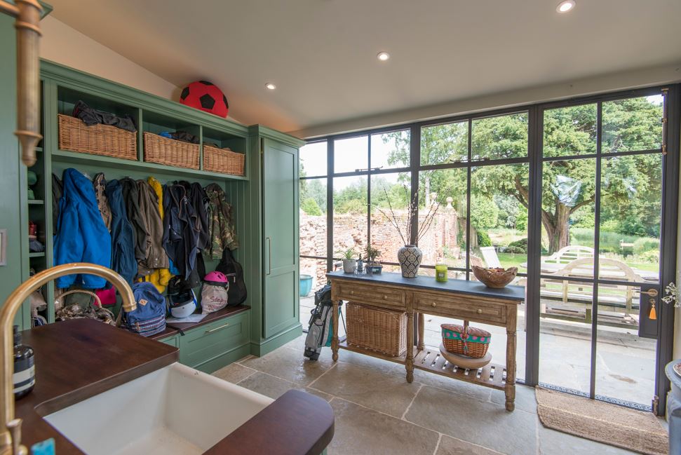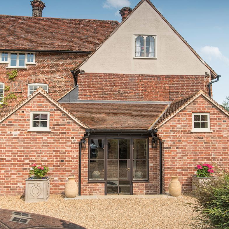 Repair and conservation works to an important Grade II Listed Tudor Courthouse with a Kitchen extension and Pantry/Boot room. The Conservation Officer requested the extension to be lightweight and contemporary and we undertook consultation with them and HE as the site was also a Scheduled Ancient Monument. Following research into the house history and was how it had changed over the years, we created a bright space off the existing kitchen with Steel + glass screens and doors under a zinc roof. The main house had a new staircase, new breathable floors, with underfloor heating and a new boot room extension on the other side of the house by adjusting an attached outbuilding. The house was completely re-plumbed and rewired with new bathrooms and the attic had a new staircase and was brought back into use.