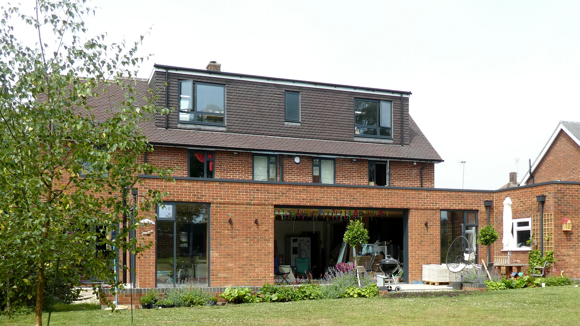 The original house was cold and dark with a terrible connection to the garden. It has been extended with a loft conversion, single storey rear extension and double storey side extension – creating 5 double bedrooms and a generous living space. The rear extension has a triple panel sliding door which slides into a pocket in the wall, blurring the boundary between the patio and interior. The side extension was conceived to give a sense of security and privacy to the garden, and to also provide an additional ground floor multi-purpose room, as well as an ensuite and wardrobe area to the master bedroom. The rear extension was purposefully set in from the boundary to integrate the valuable southern aspect.