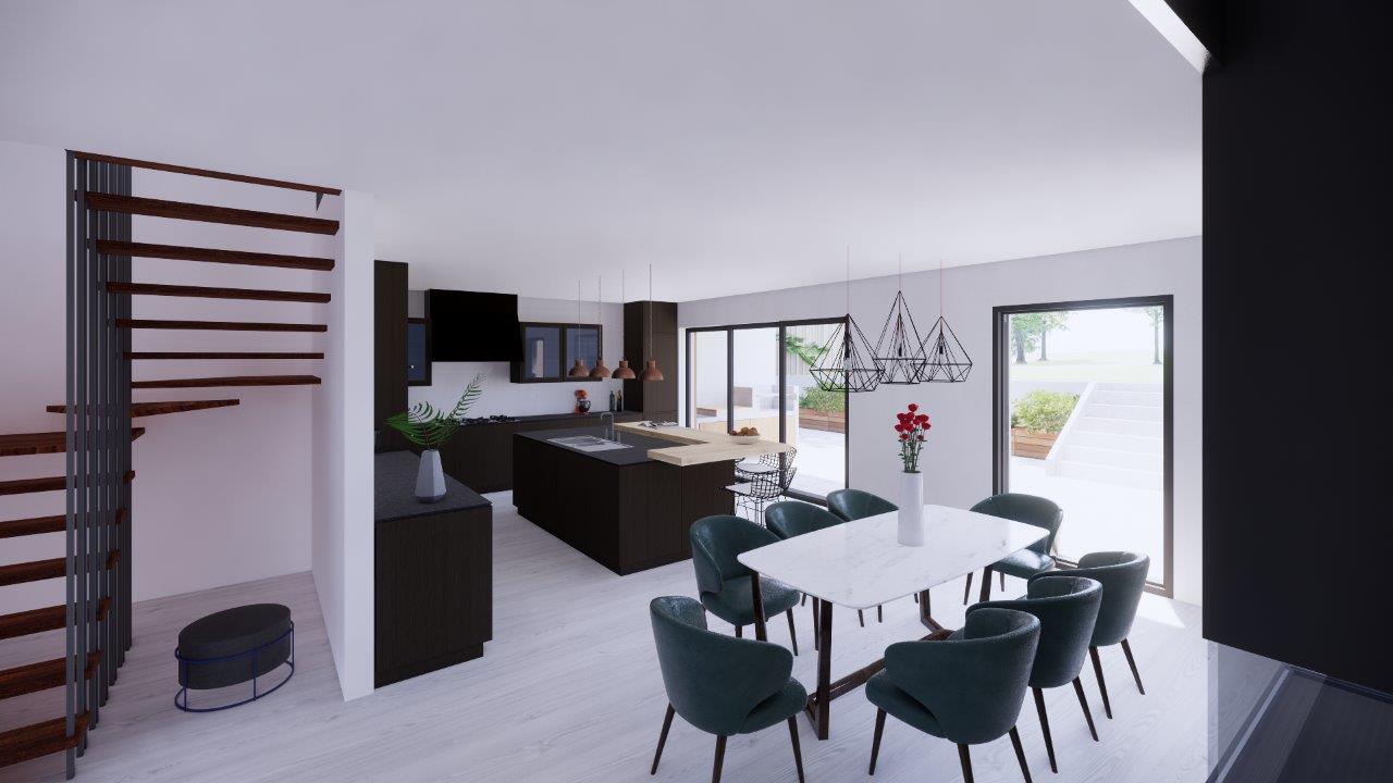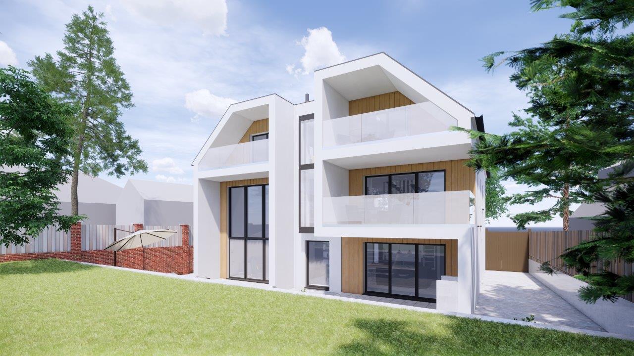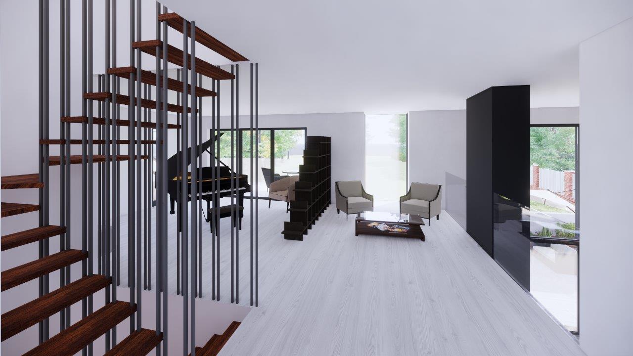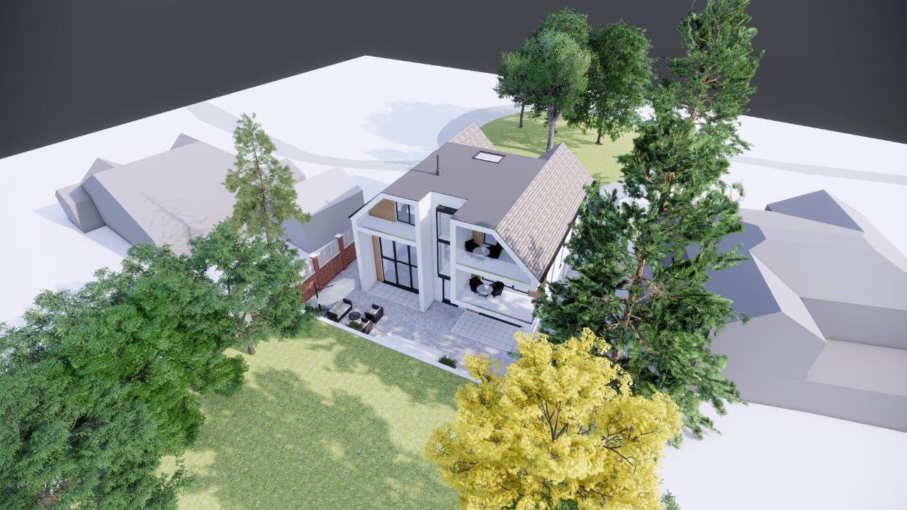 A contemporary new build design that we are currently working on. A 4 bedroom house, with south facing balconies acting as solar shading for the internal spaces below. The dramatic double height entrance and living space allow for a visual both connection vertically and horizontally. ?