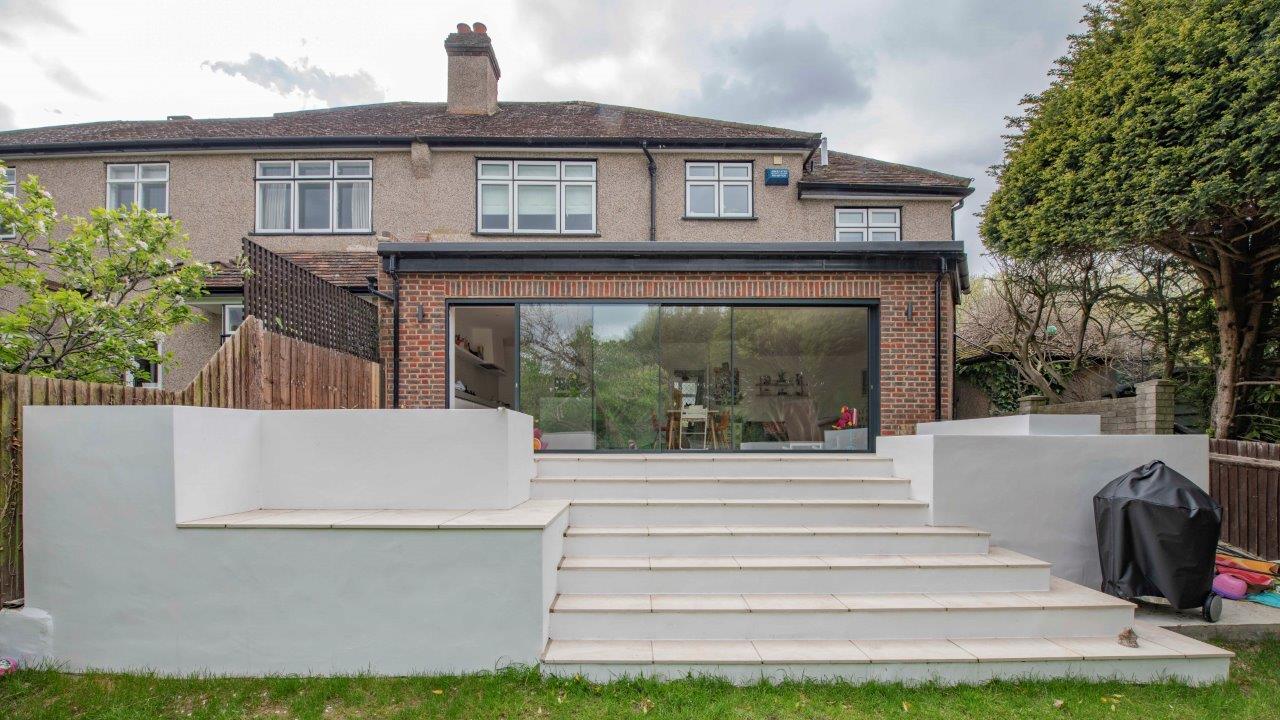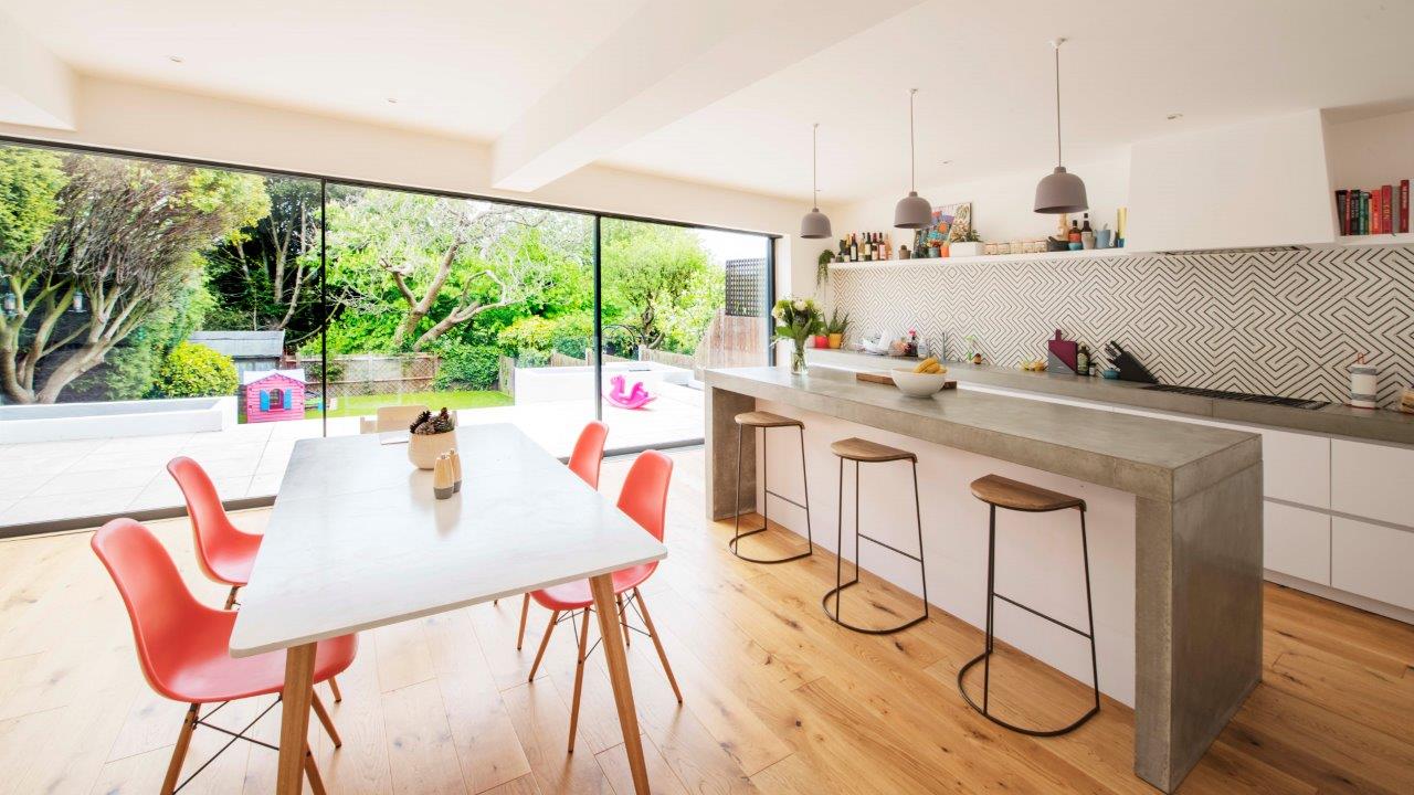 Full house refurbishment and extension of this beautiful Victorian house in Carshalton, which lies within the Carshalton Park Conservation Area. The scheme includes a stunning open-plan family space with raised terrace to over looking the garden. The spectacular 6.5 metre opening to the rear of the house is broken up with 3 large sliding doors with a tiny 20mm frame, maximising the natural light into the space and view to the garden. ? The kitchen has a tactile concrete worktop with psychedelic tiled splash back. This is a theme that is continued throughout the house with decorative tiling in the WC, ensuite and family bathroom.