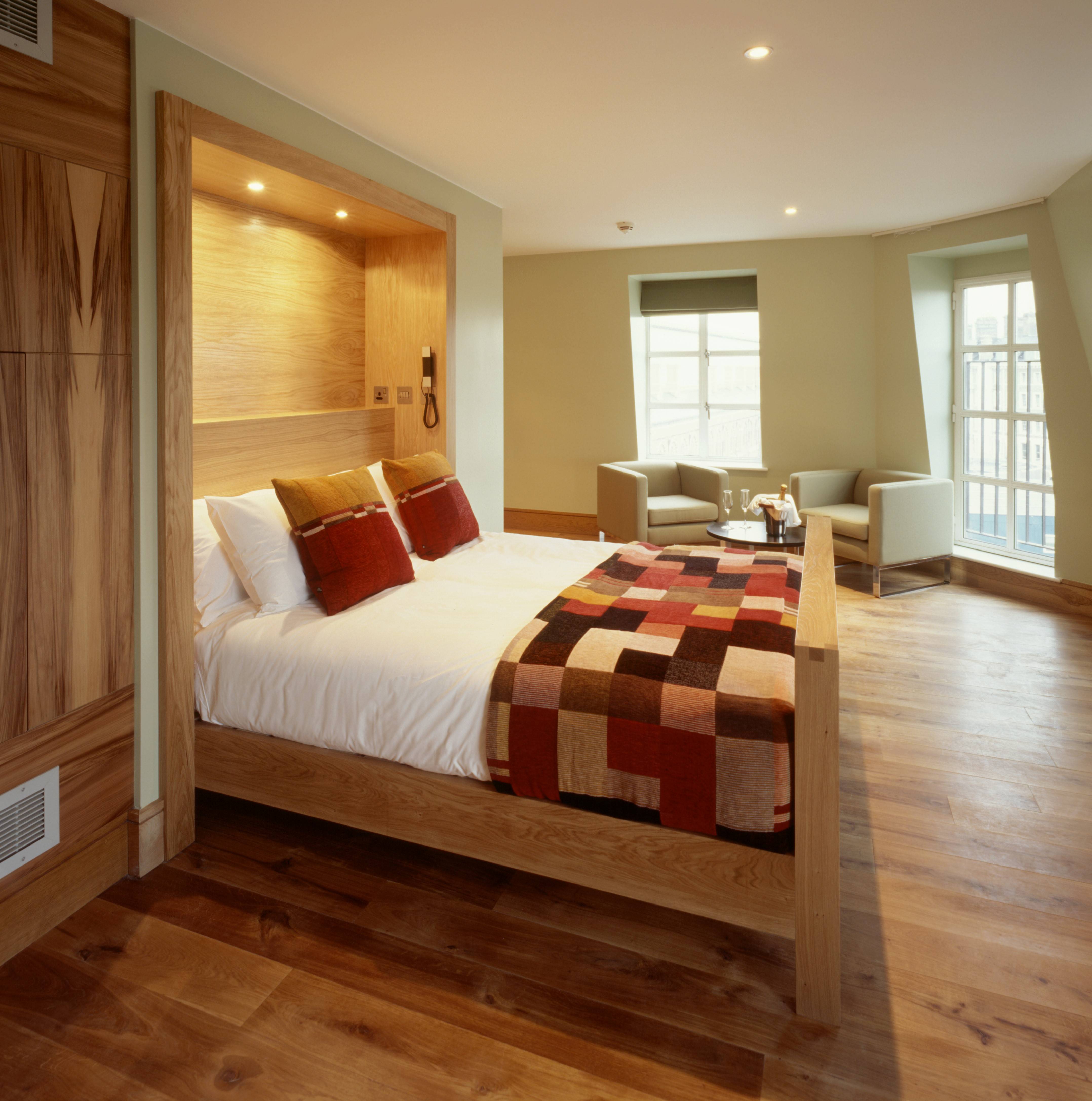 Extension and remodeling of 1920 former bank building to form new hotel. Full design services from concept to completion for bedrooms, bathroom, restaurant, bar and reception area.