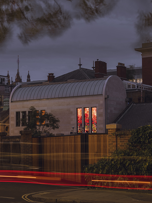 Our work entails the renovation and extension to Westminster Coroner’s Court, a Grade II listed, late Victorian building on Horseferry Road SW1. The courthouse is situated very close to the Houses of Parliament, Buckingham Palace, and to some of the major civic institutions of the UK. The client is the City of Westminster and Her Majesty’s Coroner for Inner West London. Our work entails the renovation and extension to Westminster Coroner’s Court, a Grade II listed, late Victorian building on Horseferry Road SW1. The courthouse is situated very close to the Houses of Parliament, Buckingham Palace, and to some of the major civic institutions of the UK. The client is the City of Westminster and Her Majesty’s Coroner for Inner West London. A non-descript 1990s mortuary sits at the rear of the Victorian building. The extension sits to the West, overlooking an open space that is habitually used as a Taxi Rank, but which is transformed into a temporary mortuary in the event of a national disaster. Phase 1 of the works comprised the creation of a Garden of Remembrance, situated to the East of the existing building, which was completed on the first anniversary of the Grenfell fire in 2018. It has been designed for the use of the bereaved families and friends of the deceased whose cases are heard at the Coroner’s Court. The new wing and gardens extend the language of the Victorian Coroner’s courthouse in a series of internal and external stone rooms, providing new office space for the coroner and her staff, as well as improved facilities for the jurors and visitors from the four London boroughs which it serves. The vaulted ceiling of the new courtroom echoes the architectural character of the top-lit glass volume of the original Victorian court. A series of artworks by the renowned stained glass artist Sir Brian Clarke animate the new building via transillumination.