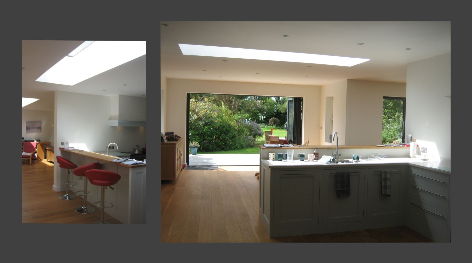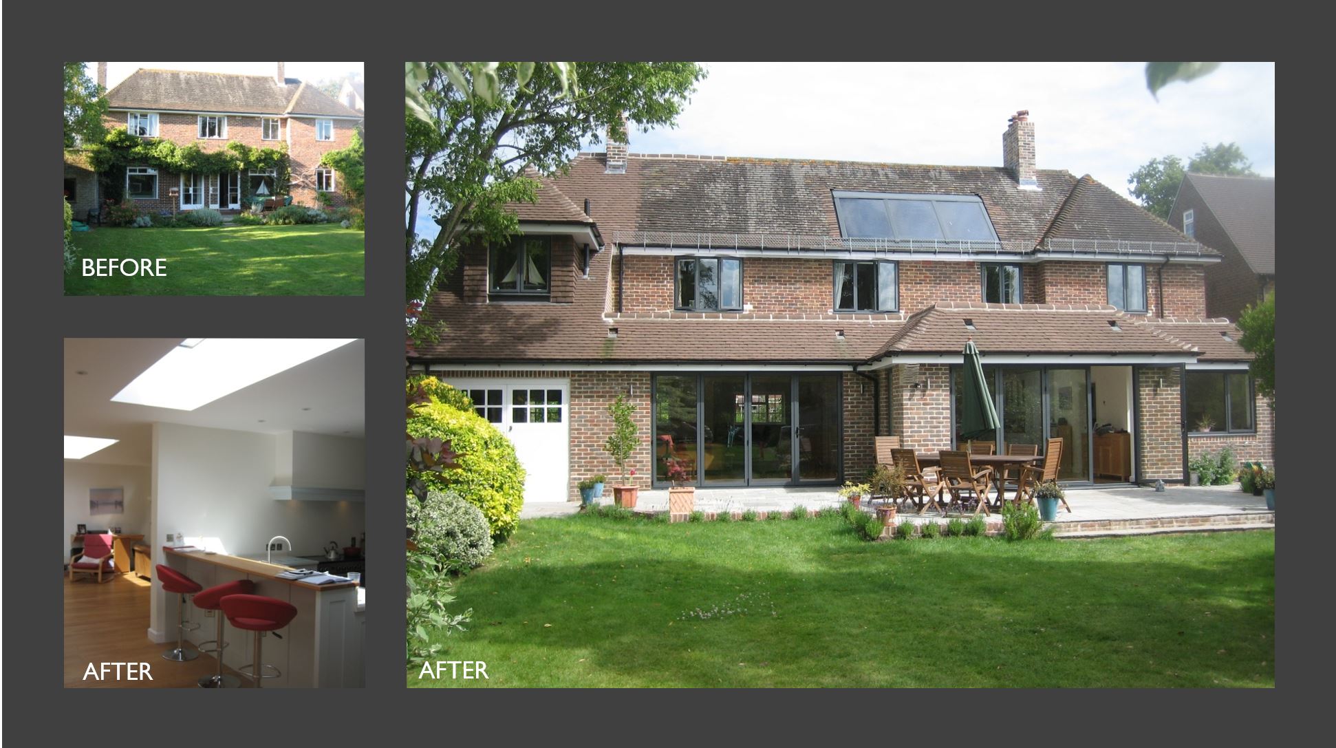 A two storey side extension with single storey rear extension to provide additional accommodation along with full refurbishment. Located in a prestigious road to the north of Chichester City centre the client required a contemporary design to assimilate and improve on the existing style of the characterful 1930's property. The accommodation provided additional en-suite with dressing room accommodation on the first floor and remodelled the ground floor to allow for a new improved kitchen, dining room and lounge all with views and access into the wonderful rear south facing garden.