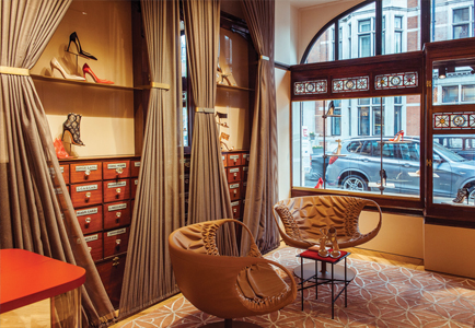 Italian shoe designer Gianvito Rossi’s first store in the UK sits on Mayfair’s historic Mount Street. The distinctive arched shopfront forms part of a 19th-century arcade clad in pink Doulton terracotta in late Gothic style. Manalo & White worked closely with interior designer Studio Urqiola of Milan on the scheme. The design was carefully refined to complement the listed shopfront and internal features, such as a display cabinet with apothecary drawers, in consultation with Westminster Conservation Department.