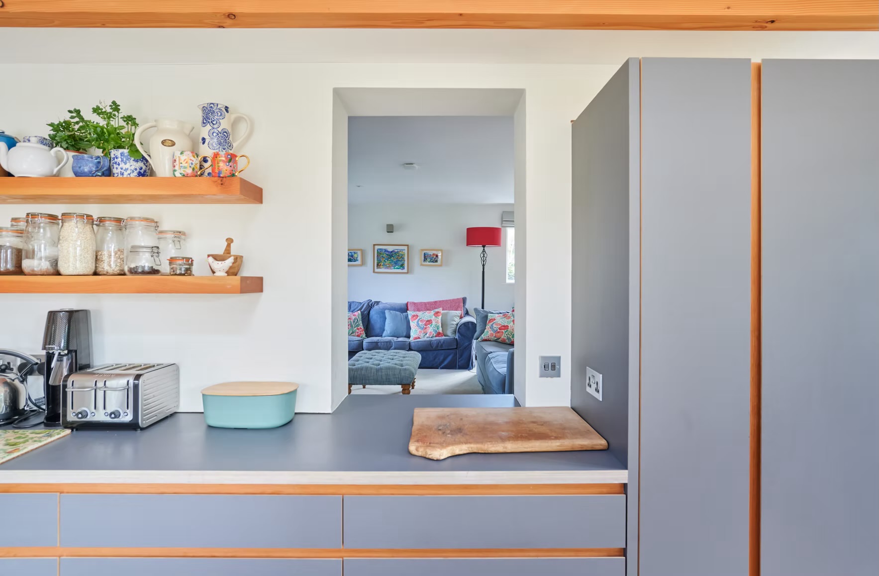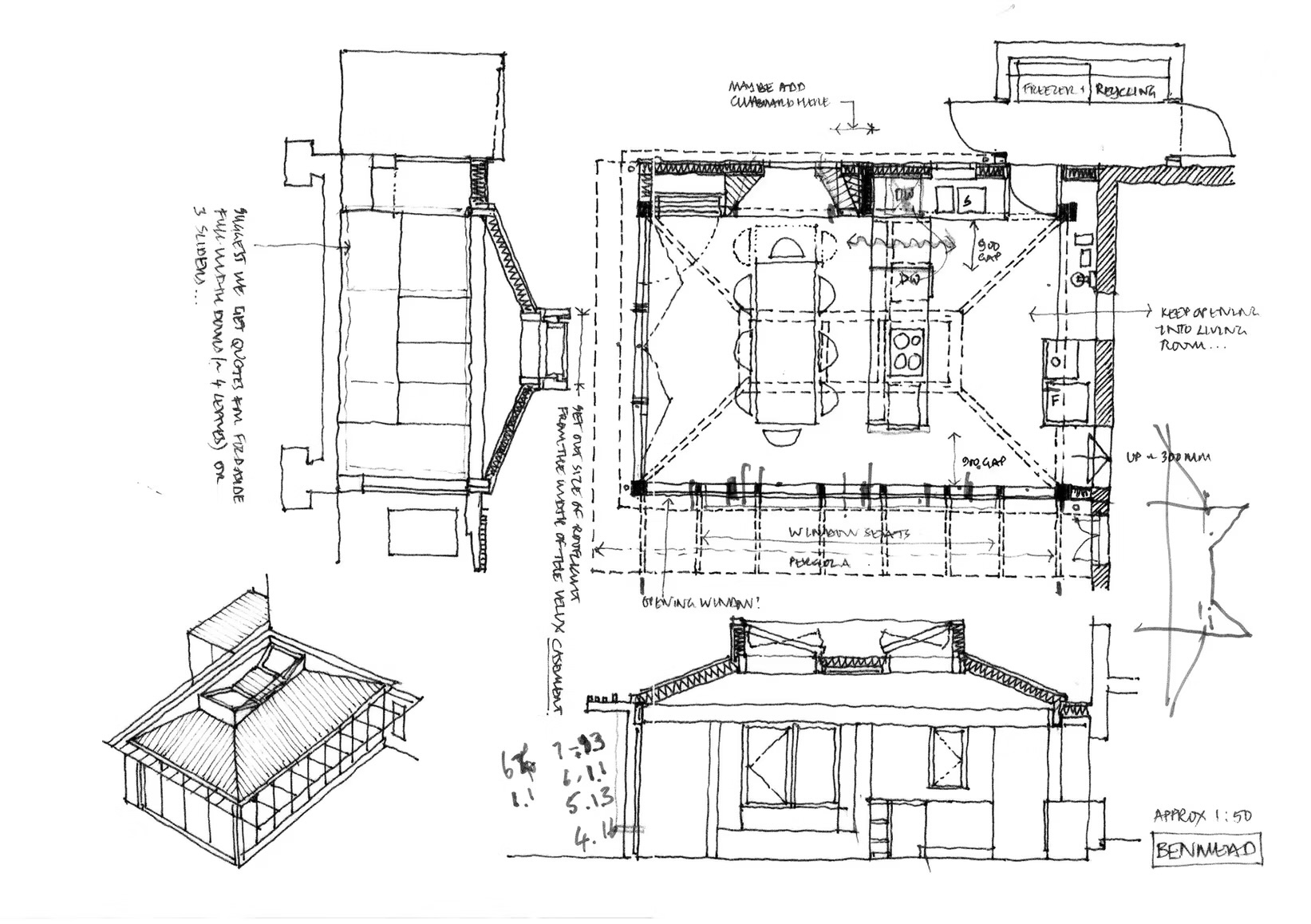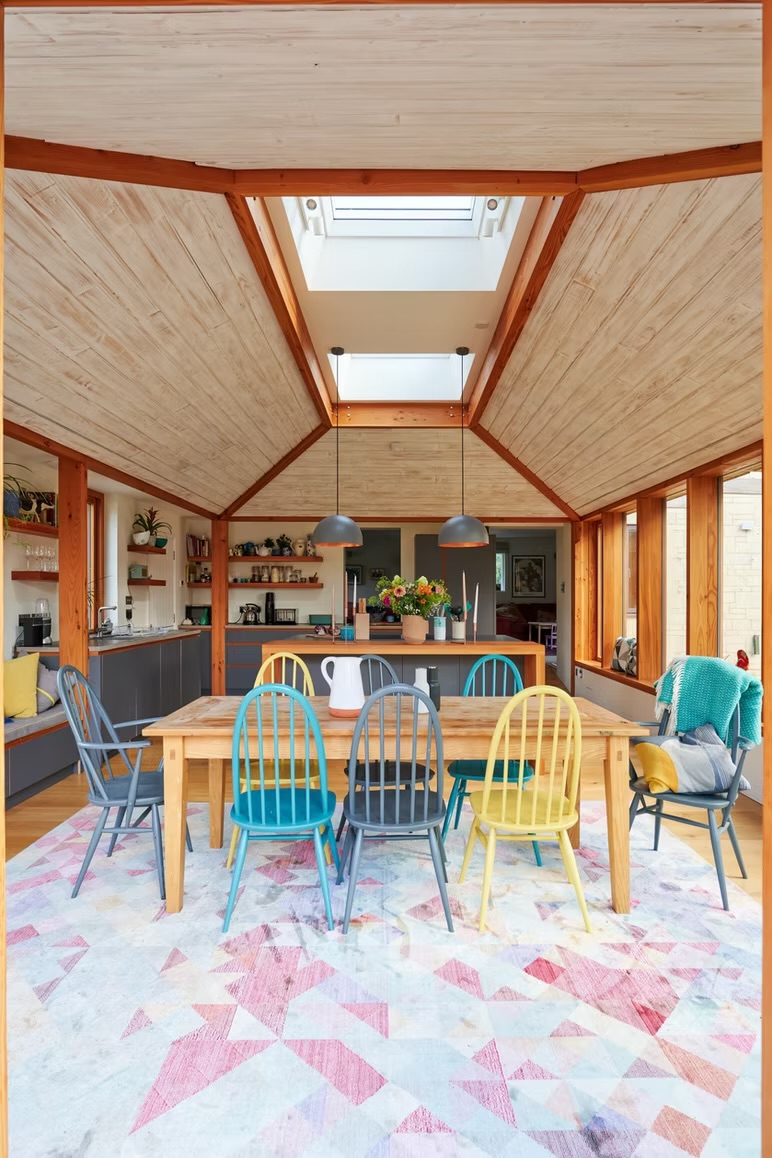 The regeneration focused on a coffered timber structure that would become the focal point for the family's daily life at the house. Using douglas fir as a reference point, the exposed timber structure is complimented by deep-reveals to windows and large fully-glazed sliding screens, right down to the bespoke kitchen's finger plates and shelving. Externally, the chestnut cladding will gradually age and silver, which will then sit comfortably with the zinc-clad roof.
