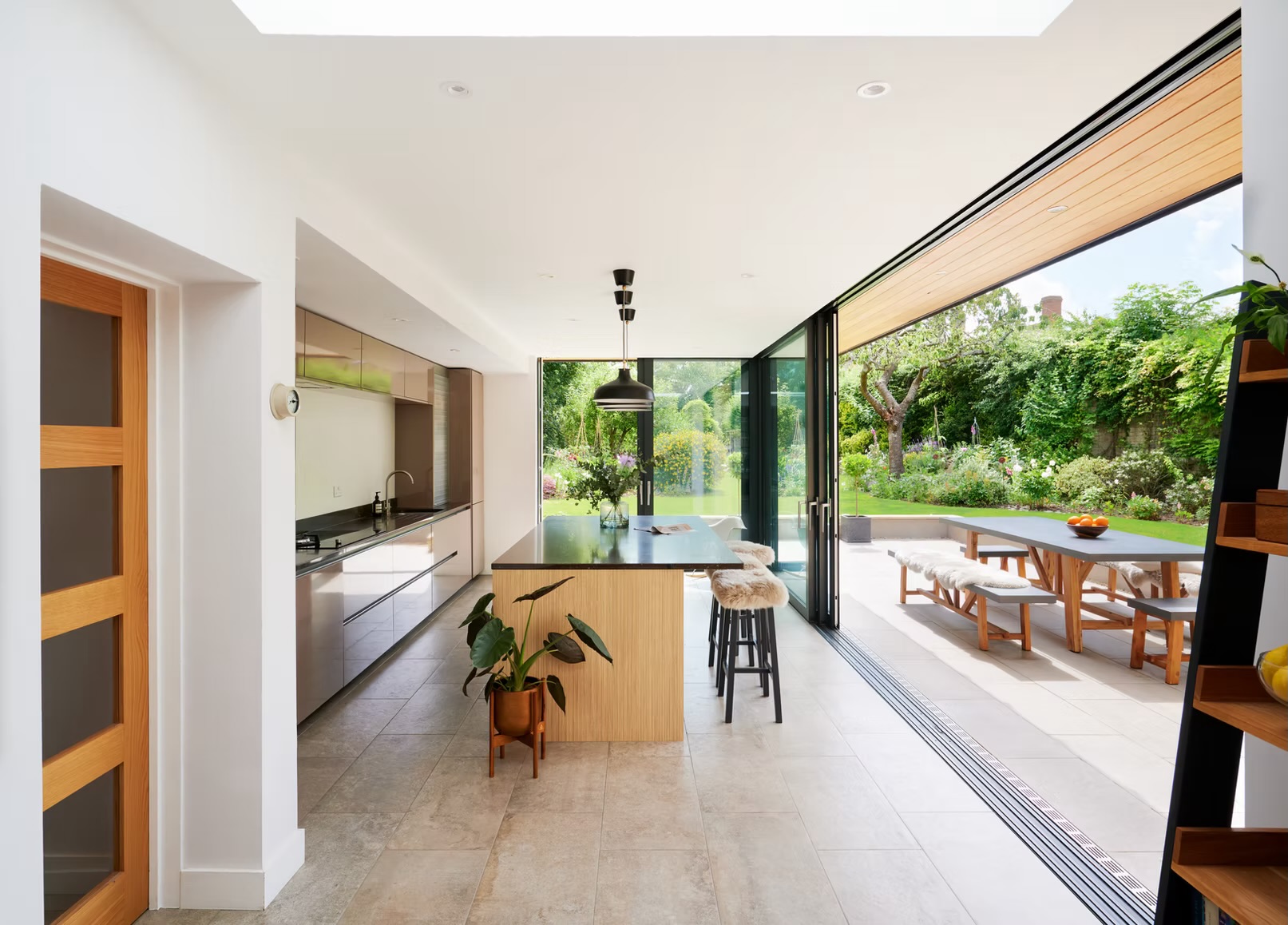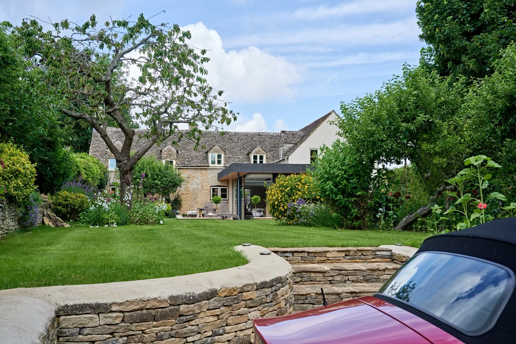 Set in the Lechlade Conservation Area, the fully-glazed extensions provide a contemporary contrast with the original cottage's fabric, while not overpowering the existing proportion or feel. By utilising the linear plot's orientation, the new kitchen enjoys morning and afternoon sunlight while the rear extension provides the backdrop to a terrace that embraces the evening sunsets. Upstairs, period roofing structures and timber detailing have been lovingly restored and celebrated in the newly-vaulted master bedroom, with the existing staircase being re-worked to maximise the sense of space and openness in the remodelled hallway and landing. Projecting eaves create natural 'brise soleil' to ensure that the internal spaces maintain a consistent temperature, while framing the private gardens to front and rear of the property.
