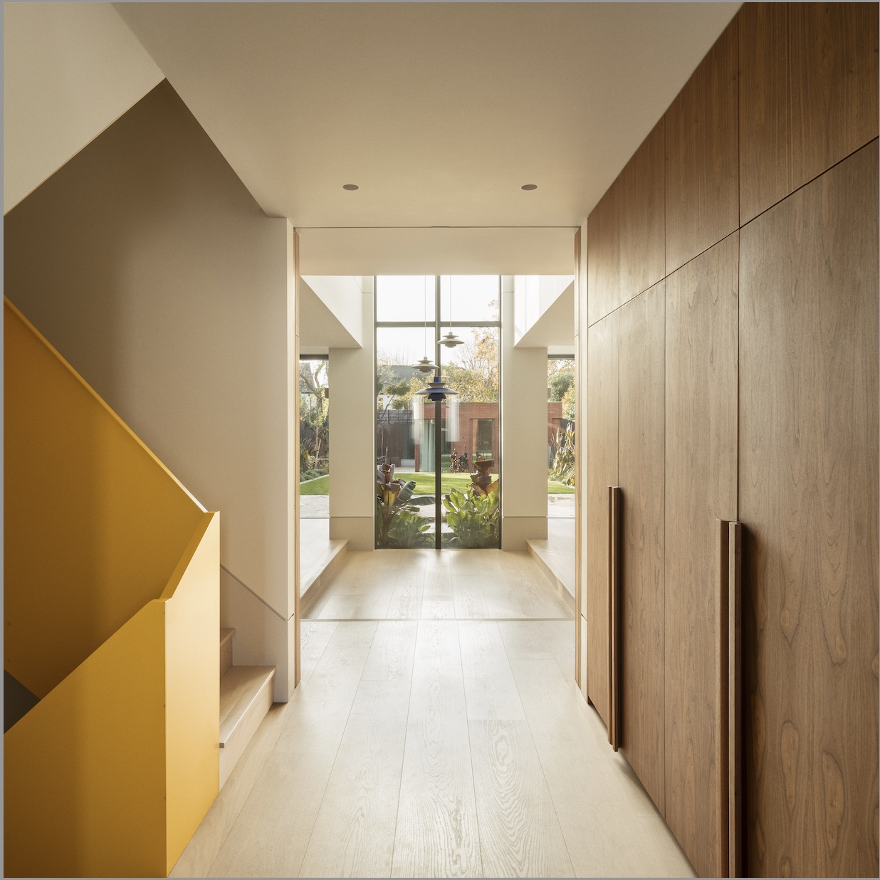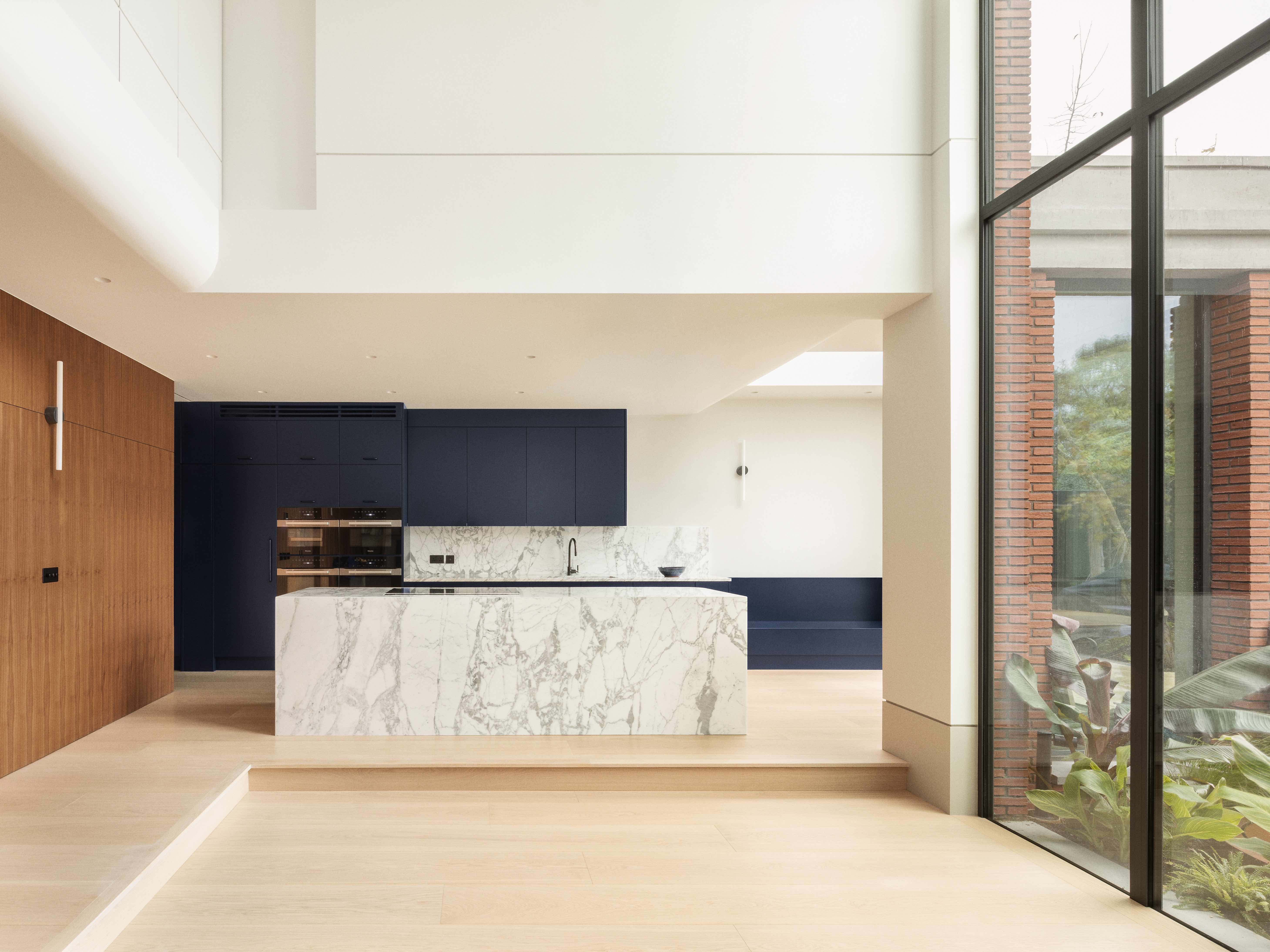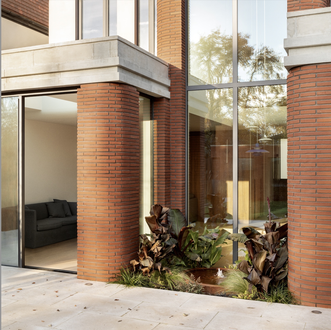 We assisted our client from initial brief and feasibility studies, through to pre-application, planning applications, concept design, detailed and technical design, tendering, negotiations and on site monitoring. We were approached to assist the client to evaluate whether we should extend and alter or demolish and rebuild his property, a semi-detached house built in the 1920s. We worked closely with Richmond council and had plannign approved for a stand out new build home. The project and scope developed further and we assisted the young family in designing and delivering a new build semi-detached house in Barnes, close to the riverside. The home features a large basement, double height open plan living space, 5 double bedrooms and a garden outbuilding that hosts an indoor pool. This one of a kind family home is due for completion in early September and features extensive landscaping, modern elegant architecture, curved brick and cast concrete details. The interiors are closely linked to the architecture and feature bespoke elements and carefully thought out features. Careful use of natural materials and high end finishes such as marble, concrete, brick, oak engineered flooring and walnut joinery.