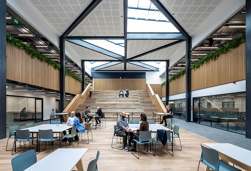 Designed to create flexible lab space combined with office accommodation in an environment that promotes collaboration between industry and education. A high level of consultation with the end users was required to understand and refine the strategic brief and building requirements. In-depth departmental interviews and stakeholder workshops defines their unique lab configurations and map out adjacencies and shared space. The building’s generous structural grid allows for multiple variants of space types e.g.industrial, laboratory and office space. This grid is combined with non load-bearing internal partitions to allow for maximum flexibility and an over-provision of fire escapes supports flexible internal layouts.