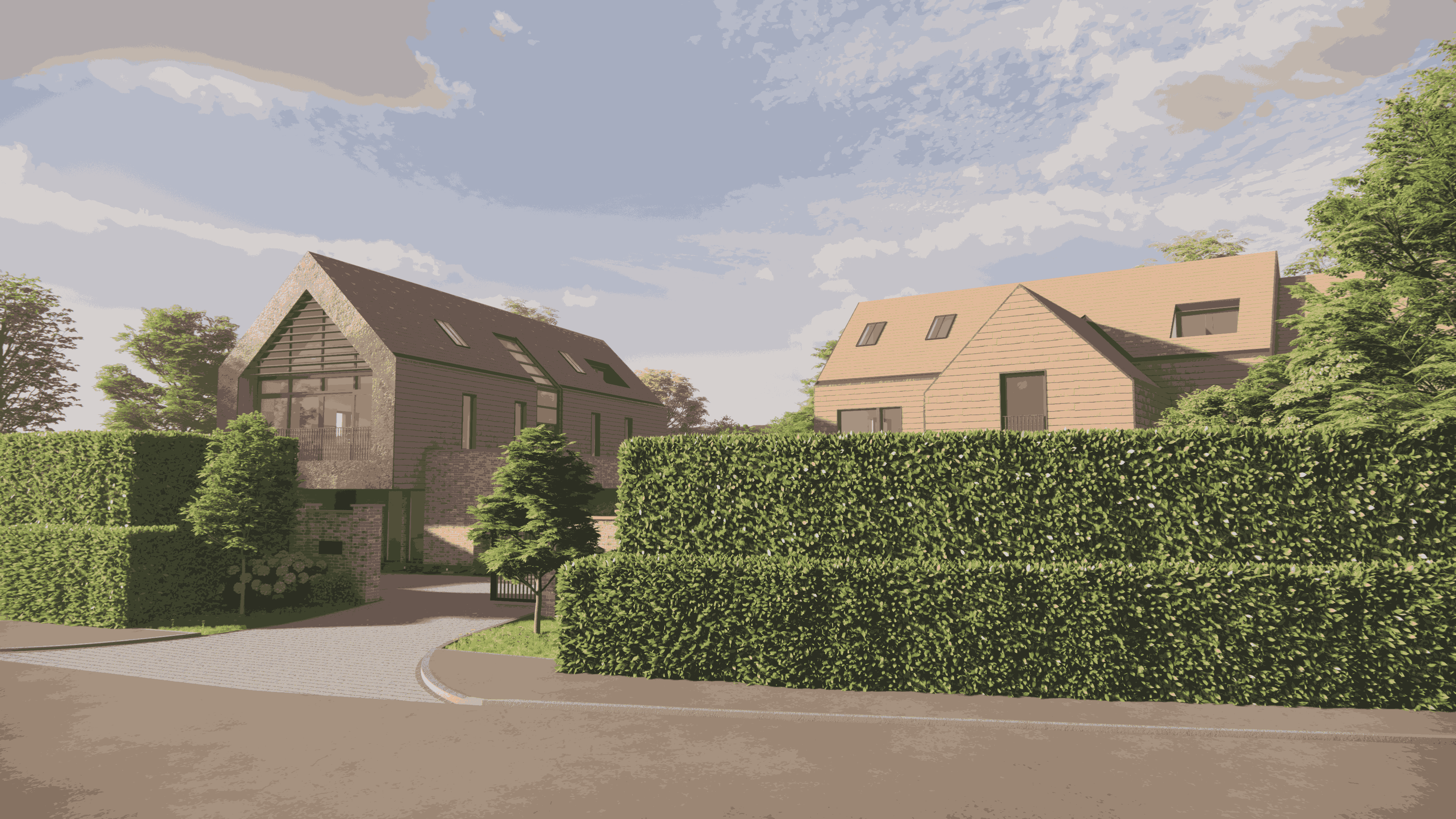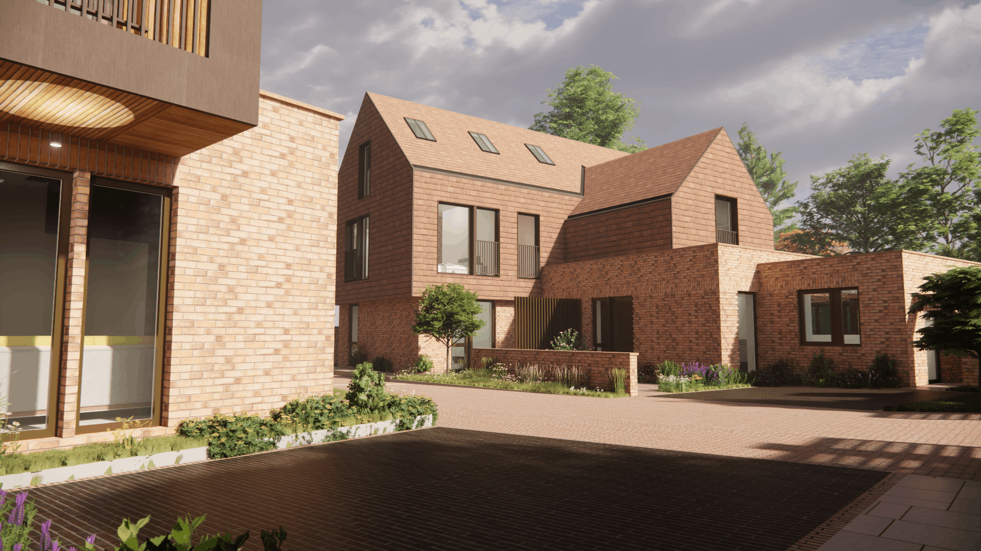 This new build apartment project occupies a highly sensitive site adjacent to a listed building, presenting both architectural and planning challenges. Following the refusal of a previous scheme, MSA Architects were appointed to re-envision the development and lead a more considered design and planning strategy. A detailed pre-application process was undertaken, during which three distinct design options were prepared and presented to the local planning authority. This collaborative approach allowed key issues of scale, massing, materiality, and heritage impact to be explored openly, resulting in a clear and supported design direction. The final proposal adopts a contemporary architectural language expressed as two clearly defined forms. A robust brick plinth, constructed using insulated concrete formwork (ICF), provides a strong and contextual base that responds to the neighboring listed building. Above, a lightweight, barn-like prism cantilevers over the plinth, constructed using SIPs and finished with clay tiles to soften its presence and reference local vernacular forms. The contrast between solid and lightweight elements creates a balanced composition that is both modern and respectful of its setting. The scheme demonstrates how contemporary residential architecture can be successfully delivered on constrained and sensitive sites through early engagement, clear design rationale, and careful material selection.