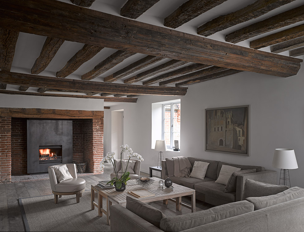 Nash Baker Architects oversaw the design, restoration, renovation, and additions to Suffolk Farm House, a Grade II listed house occupies around 2 hectares of grounds and gardens. The external walls are of Flemish brickwork, generally, 18” thick with Dutch-style gable ends. One of the key starting points for the project was a careful restoration of the main roof. The roof coverings are plain clay tiles supported on an unusual A-frame of hand-carpentered oak. The resulting outcome is a subtle and exquisite weaving together of the historic, the not-quite-so historic and the contemporary into a quietly confident statement of architectural and design excellence.