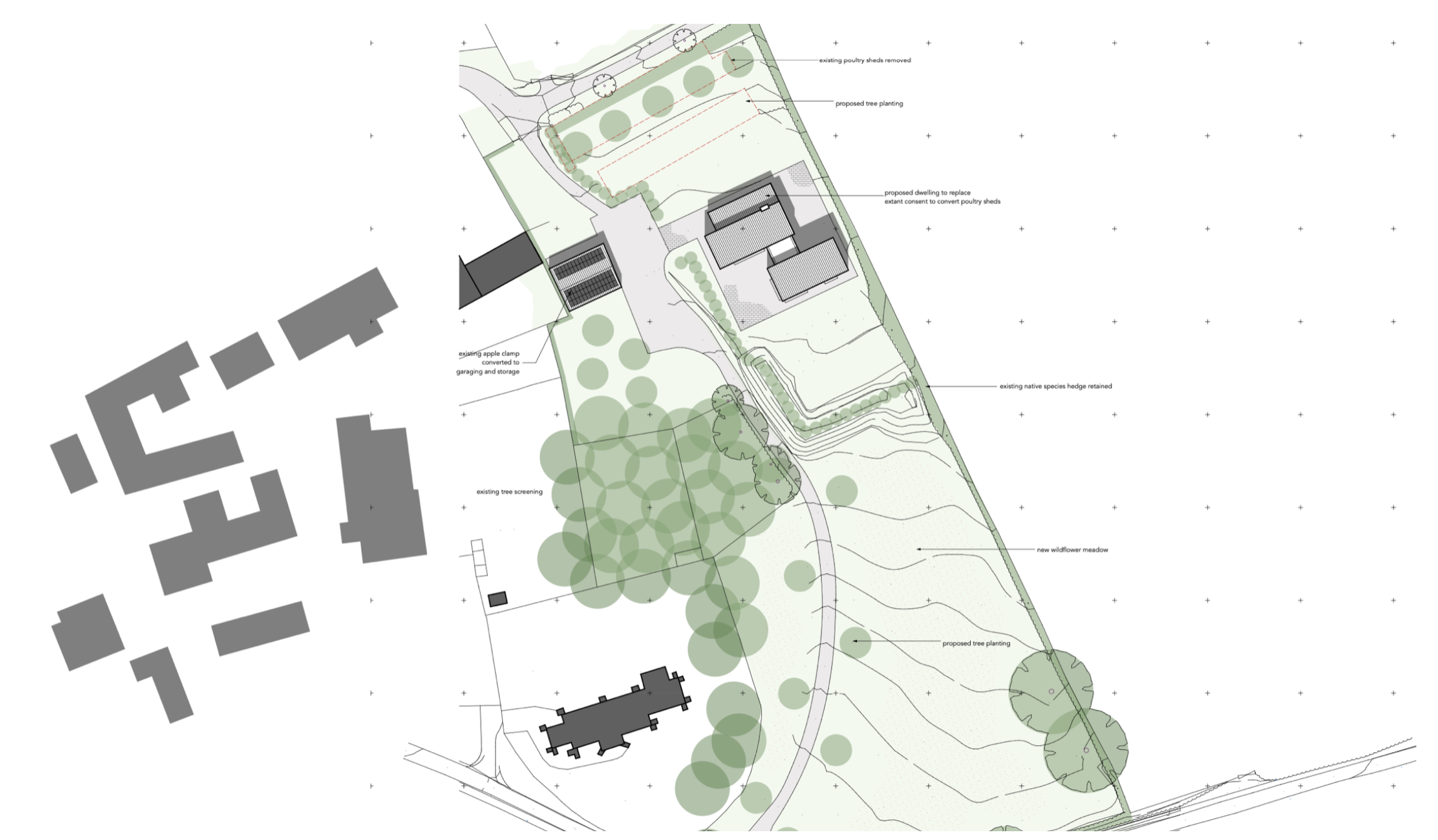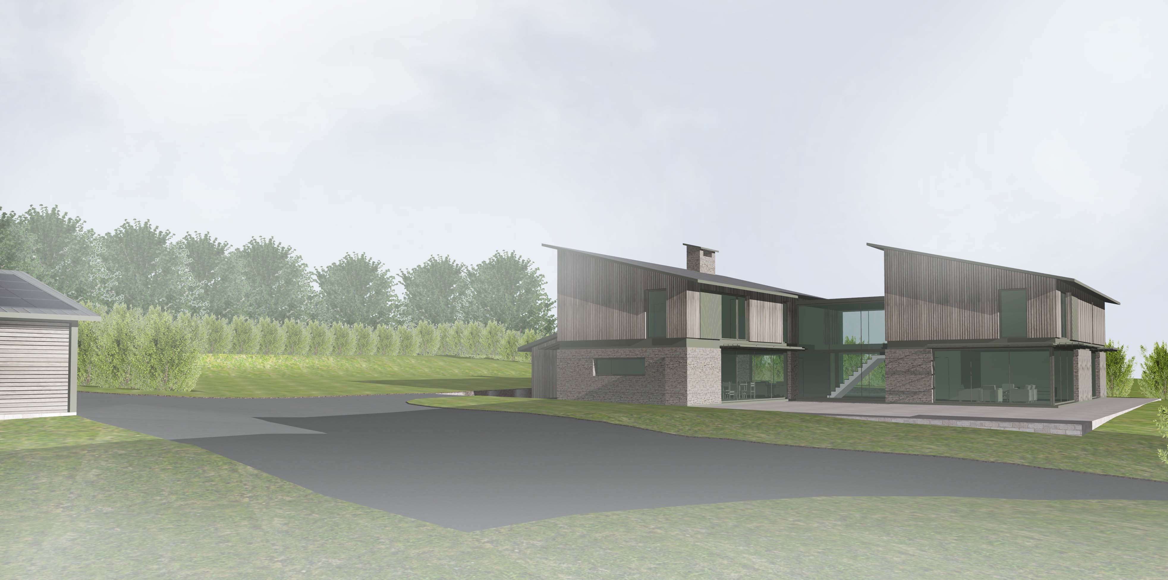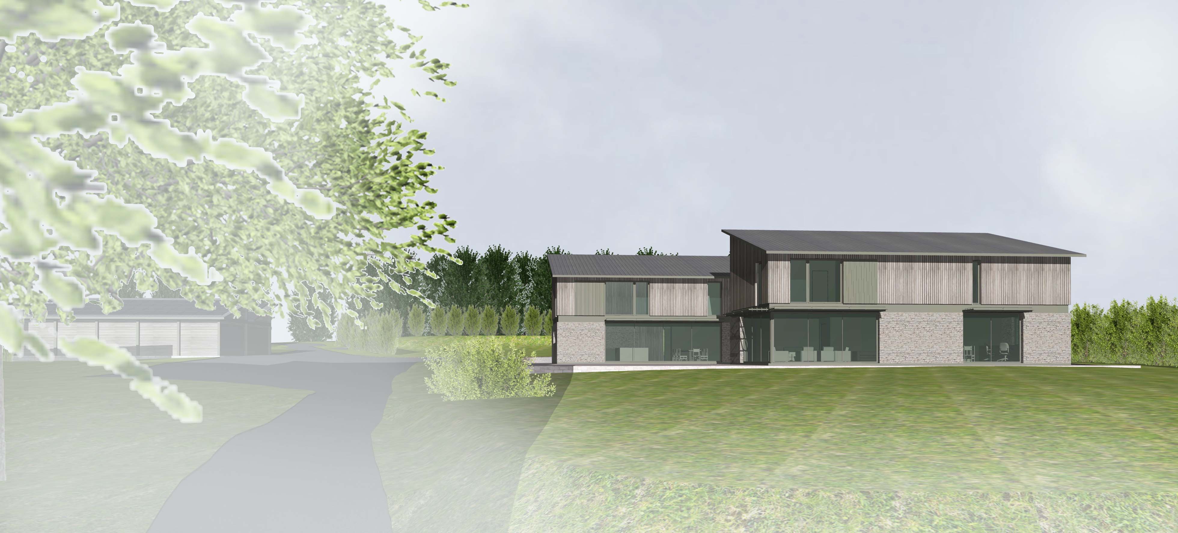 Sometimes, inspiration can flow from humble origins. A thorough site analysis served as the starting point for the interpretation of the client brief, which went on to explore a range of architectural precedents for the building form and materiality. Drawing inspiration from the silhouette of the existing buildings on the site, the design proposes a pair of low mono-pitched ranges, connected by a glazed link structure which is concealed from long range views and the main approach and arrival. Project commenced at Owen Hicks Architecture Ltd (c)
