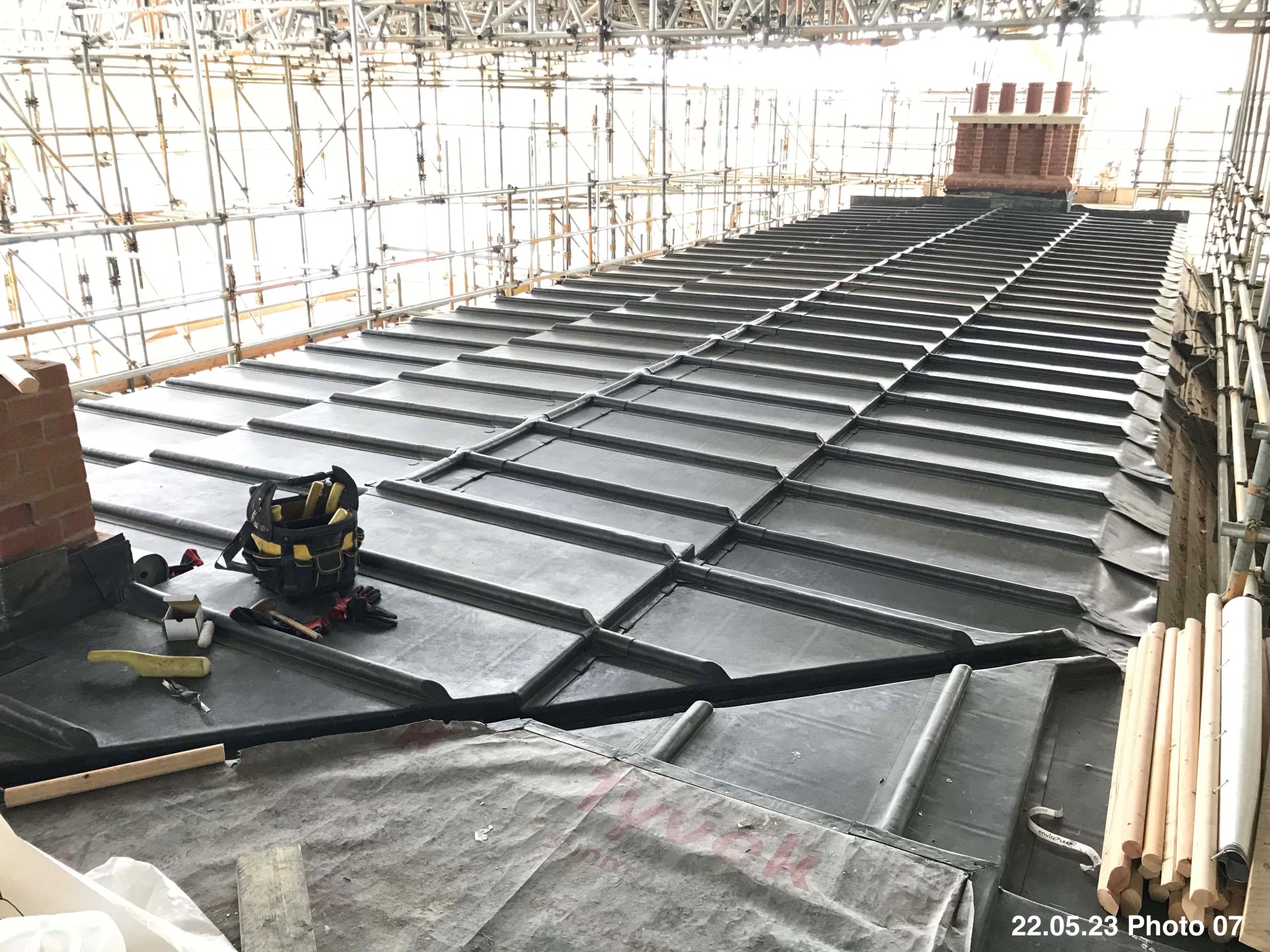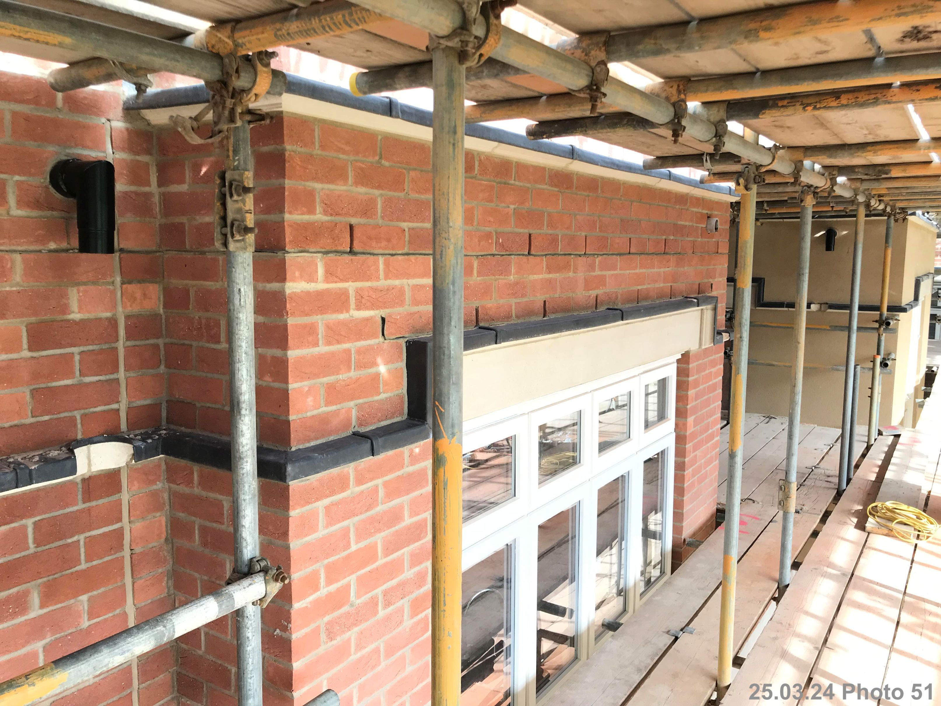 Soon after moving in, the leaseholders of a block of 10 luxury flats in Kent found the walls were damp and the roofs leaked. We acted as Clerk of Works, under the direction of John Potter Architect, to inspect the remedial works. The cavity walls were dismantled back to the inner leaf, the inner leaf repointed, and the walls reassembled with new materials. The existing single ply flat roofing was removed, and replaced with a new insulated timber structure supporting lead sheet roofing.