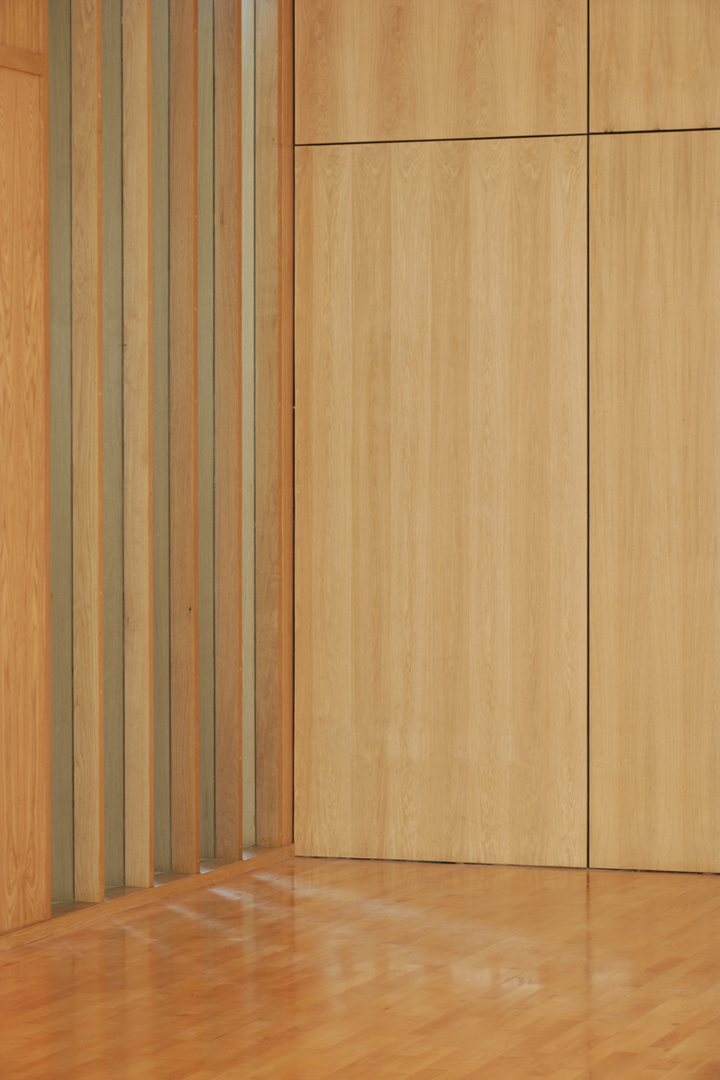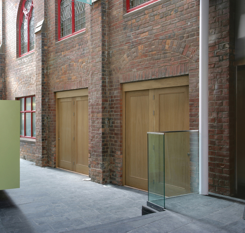 A derelict auction house adjacent to the existing church has been replaced with a two storey church hall building to accommodate a variety of multi- purpose rooms for the church’s many activities. Despite the site having neighbouring buildings overshadowing it, the design brings daylight into each principal space in a dramatic way. The main hall can approached both directly through the new entrance from the street and from the existing church. Although there is a first floor above it, natural light floods the main hall, unexpectedly at the rear of the space, providing an illuminated destination for visitors. Natural light is also maintained in the existing church’s first floor sanctuary through roof glazing along the west edge of the new building. This allows light to spill across the brick east elevation of the church. The stone tracery of the existing church is visible from within the church hall.