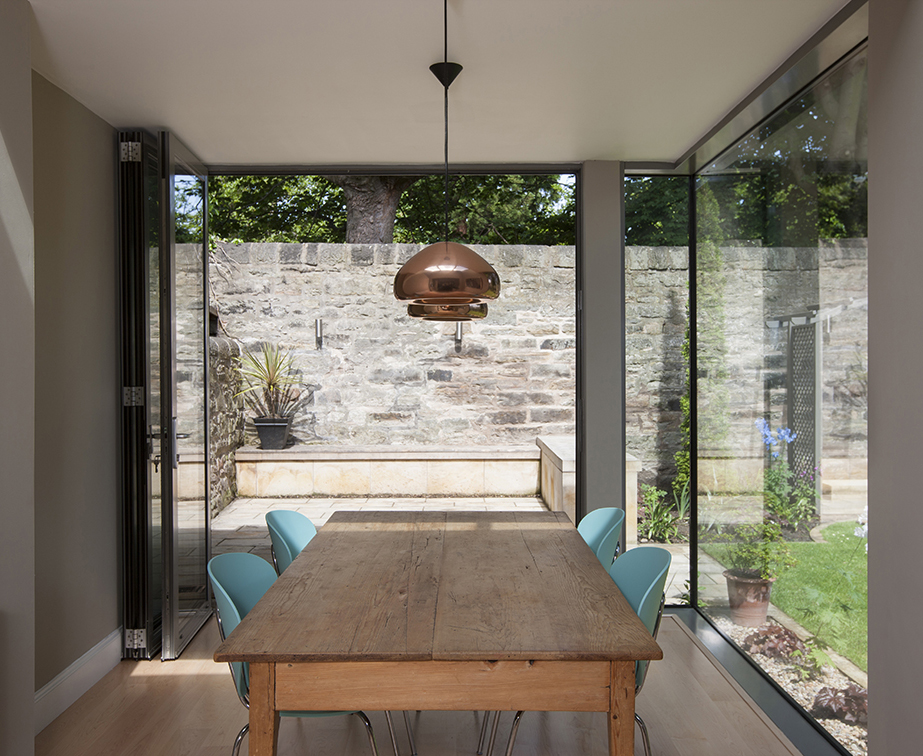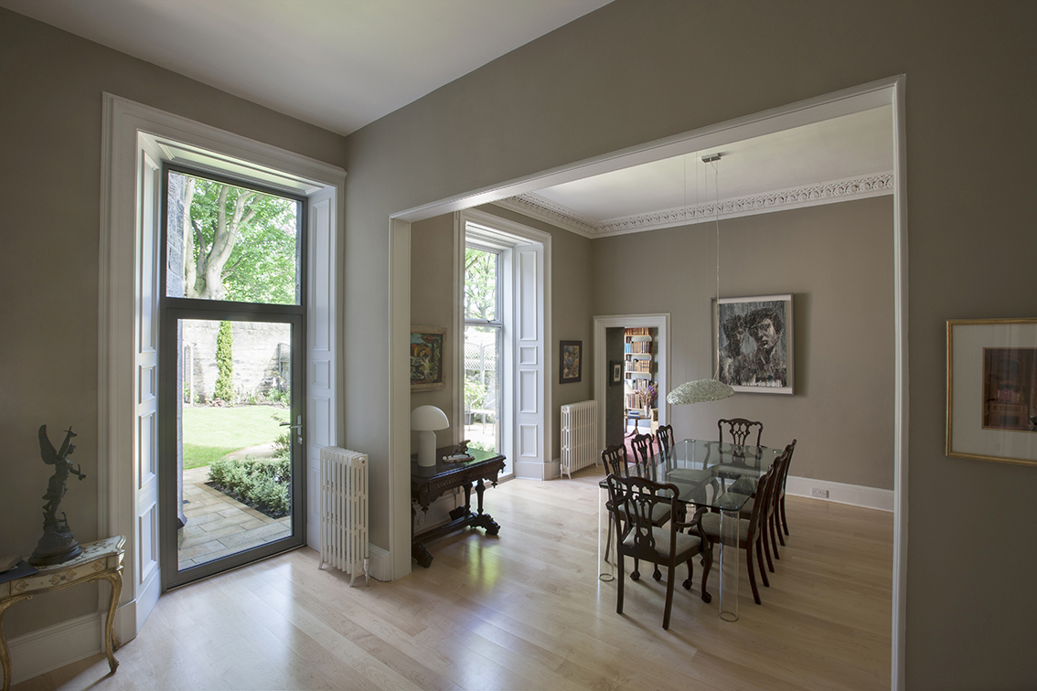 All too often creating drama in an interior is assumed to require radically changing a house from a being set of distinct separate rooms to a single open plan space. This process often removes the character of the original house with its specific cornices and fireplaces defining each room’s purpose. Instead, making selective new openings to align doorways and window can bring the satisfaction of say glimpsing the rear garden from the entrance hall, or allowing borrowed light to enter a room previously denied it. Having lived in the property for twenty years, the clients were well-placed to separate the idiosyncrasies that they wanted to retain to keep the character of their blonde sandstone Victorian semi, and those they wanted to improve upon. “Victorian houses like this often have a very dark rear area,” they explained, “there were a couple of doors that led into what would have been the maid’s area and original kitchen, but they could not be opened together, so it created this kind of ‘social airlock’.”