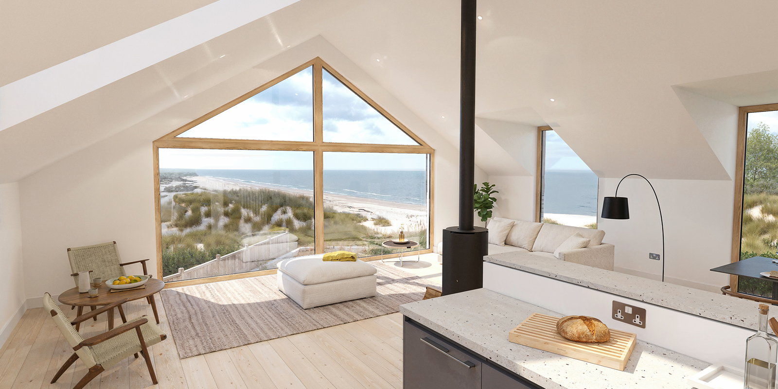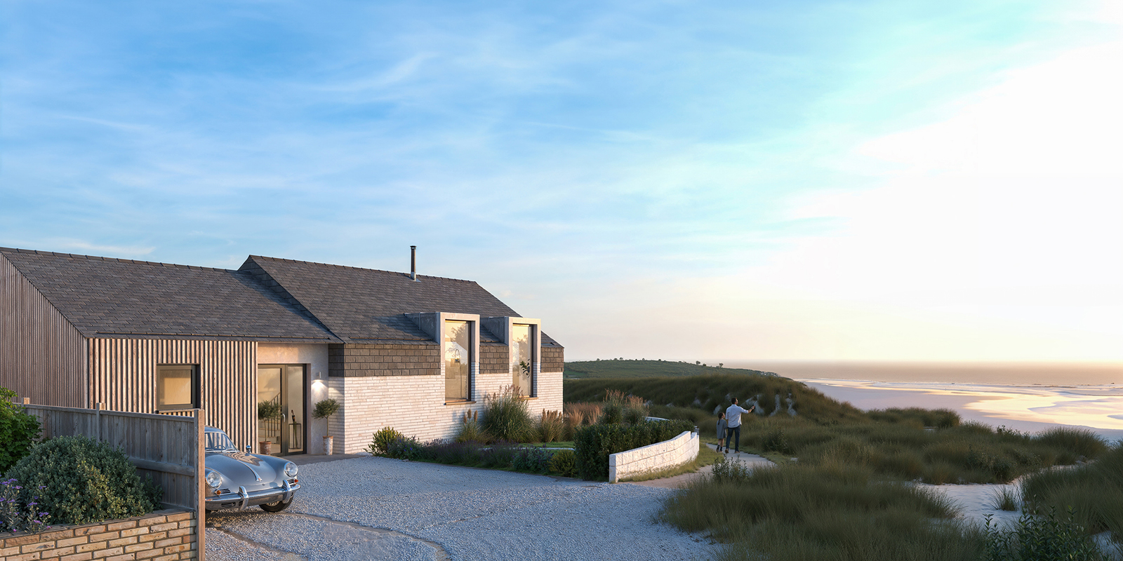 The existing mid-to-late c20th chalet bungalow on this site suffered greatly with a long list of maintenance issues, did not utilise the plot it sat on and was highly thermally inefficient so our clients engaged with us to create a replacement dwelling. We sought to maximise the potential of the plot, enhance connections to the garden and frame the stunning coastal views with the following key objectives: Sustainability: Use of high-quality natural materials that reflect the street's muted palette in a contemporary and refined manner. Contemporary Aesthetic: A modern, clean design with an emphasis on open plan living, with improved landscaping and high-quality finishes. Thermal Efficiency: A focus on creating a thermally efficient home.