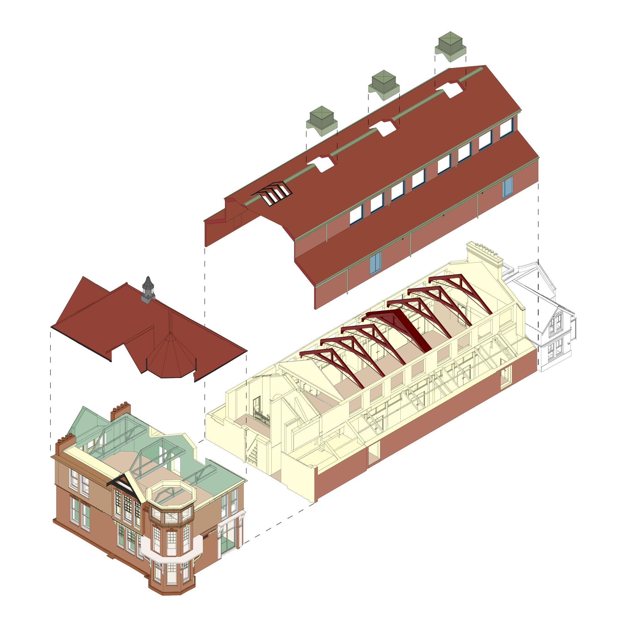 The Tate Institute is a net zero carbon, natural material, circular economy-led retrofit of a locally listed heritage building in the Royal Docks, Newham. We are working with local contractors to bring the derelict space back to life as a net zero carbon community space, which embraces circular economy principles. Once complete, the building will be operate by ReSpace Projects, a non-profit organisation committed to delivering social value for the community of Silvertown. Loved by the people of Silvertown for generations, the building holds a rich and personal legacy for local residents that they have given us a personal insight into through stories and memorabilia. ReSpace and Office S&M are now working to restore the Institute back to its former glory and deliver a community asset for the people of Silvertown. The new proposal will include an enterprise hub, creative studios, workshops, kitchen, bar, event space and gardens for the community. The retrofit is a showcase in using natural and reclaimed materials to deliver on circular economy principles. For example, natural wood fibre insulation and lime plaster are used extensively around the masonry walls, roof and floor junctions to improve the thermal performance, airtightness, and breathability of the structure. The building’s net zero carbon operation will be achieved through solar panels and air source heat pumps, ensuring long term energy efficiency and operational affordability for community use.