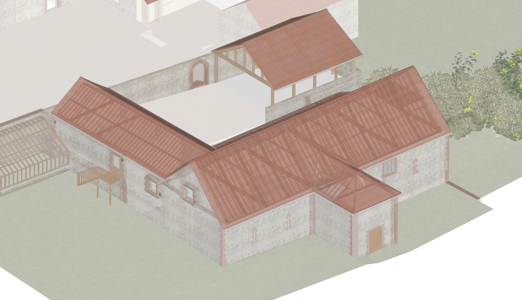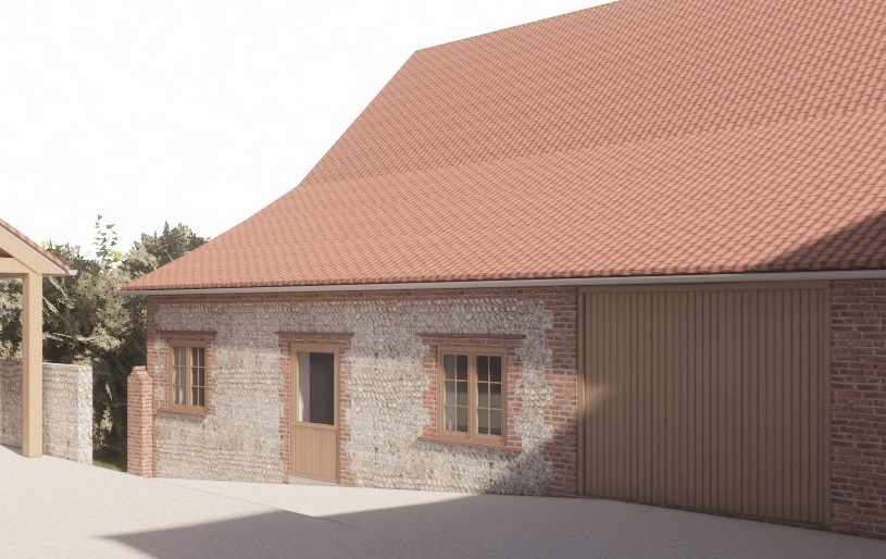 Other Studio Architects have been appointed to lead the refurbishment of an 18th-century brick and flint barn and undertake works to a wider country house master plan, located within a North Norfolk Conservation Area. The project will deliver a comprehensive restoration of the barn including roof renewal, structural timber repairs, and the stabilisation of its historic brick and flint masonry. The brief centres on reimagining the barn as a generous ancillary family space- designed for both function and social entertaining. The proposal carefully celebrates and retains the barns historic character, new oak-framed windows will be introduced into existing and previously blocked up openings, bringing natural daylight into the plan and framing views across the surrounding landscape. Internally, the ground floor will be adapted to include a refurbished workspace, a garden utility, and a new WC. The original threshing floor will be preserved and offset by new brick parquet, while a timber staircase will provide access to the first floor. Lighting will be carefully designed, with suspended fittings positioned between the existing timber frame, helping to highlight the barn’s historic structure and illuminate space. To the rear, the derelict base of the original glasshouse will be restored, with a new oak-framed glazed structure providing a restrained yet contemporary addition. A key consideration in the project is its existing ecology: the barn is currently home to both bats and a resident barn owl. In collaboration with a team of ecologists, sensitive measures are being implemented to minimise the disruption of the bats and protect the owl’s nesting site. The wider site masterplan works extends to the main house and entrance approach. A new porch is proposed, designed to echo the Arts and Crafts gable addition by Arnold Dunbar Smith and Cecil Claude Brewer (Smith & Brewer). A new opening to a courtyard garden will be created, alongside an oak framed carport replacing an ill-conceived garage. These wider alterations create a clearer and enhanced sense of arrival to the house and barn.
