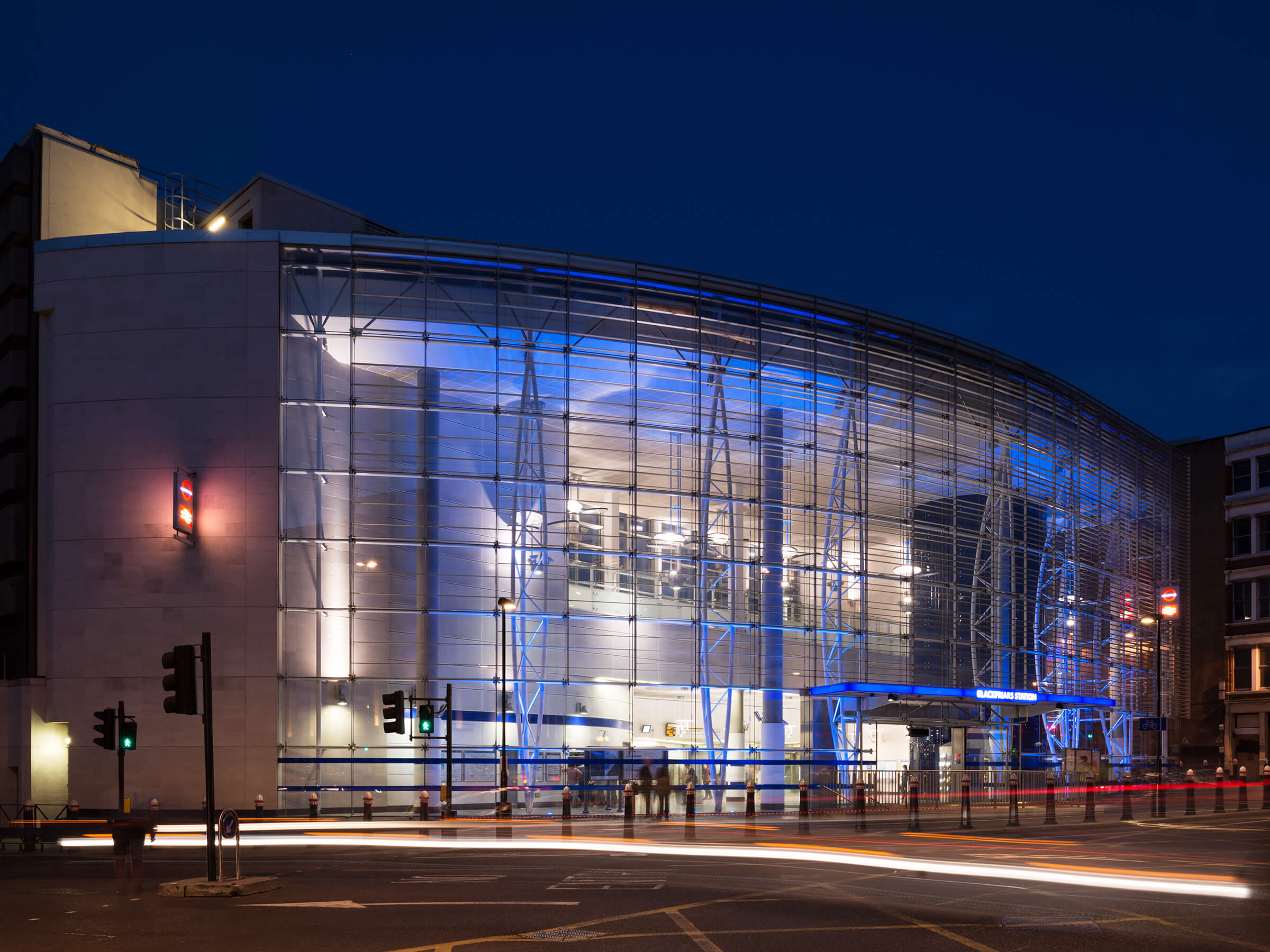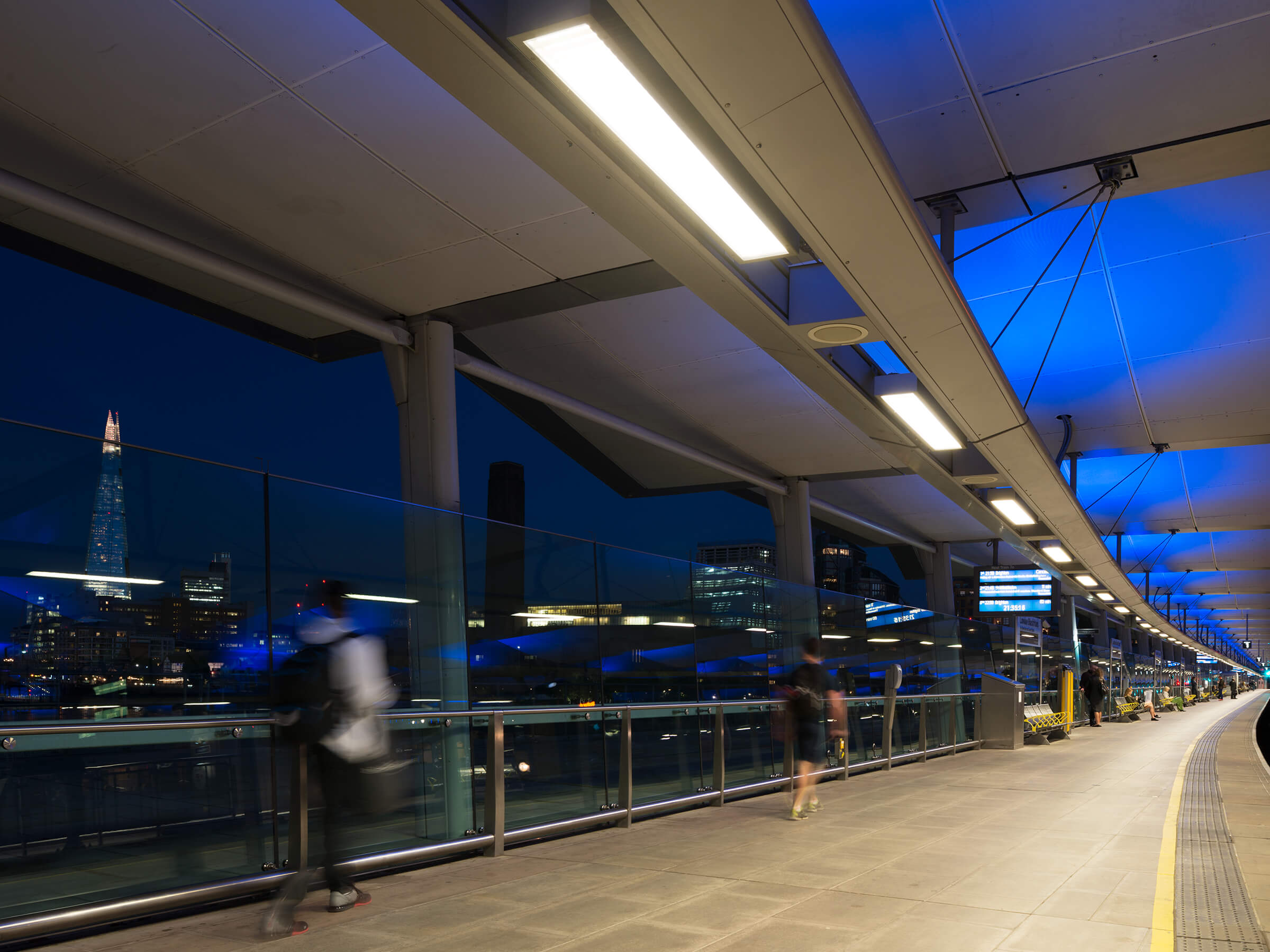 Running between the banks of the River Thames, within the shadow of both St. Paul’s Cathedral and the Tate Modern gallery, the redevelopment of Blackfriars railway station presented an intriguing and extremely complex design challenge. The Royal Institute of British Architects (RIBA) award-winning scheme extended the station along the full length of Blackfriars Bridge, enabling the creation of a new station entrance on the South Bank. As well as significantly increasing capacity, this idea greatly improved connectivity to and from the surrounding areas. The redevelopment of the North Bank entrance allows access to both London Underground and Thameslink networks. A low-level, segmented roof supported on an elegant steel and glass structure, minimises the impact on views up and down the river. Integrated north-facing opening roof lights ventilate the platforms below, maximising daylight and mitigating solar gain on what is now the world’s largest solar-powered bridge. Fittingly, the bridge’s aluminum panel roofing system was transported to the site via barges along the River Thames.