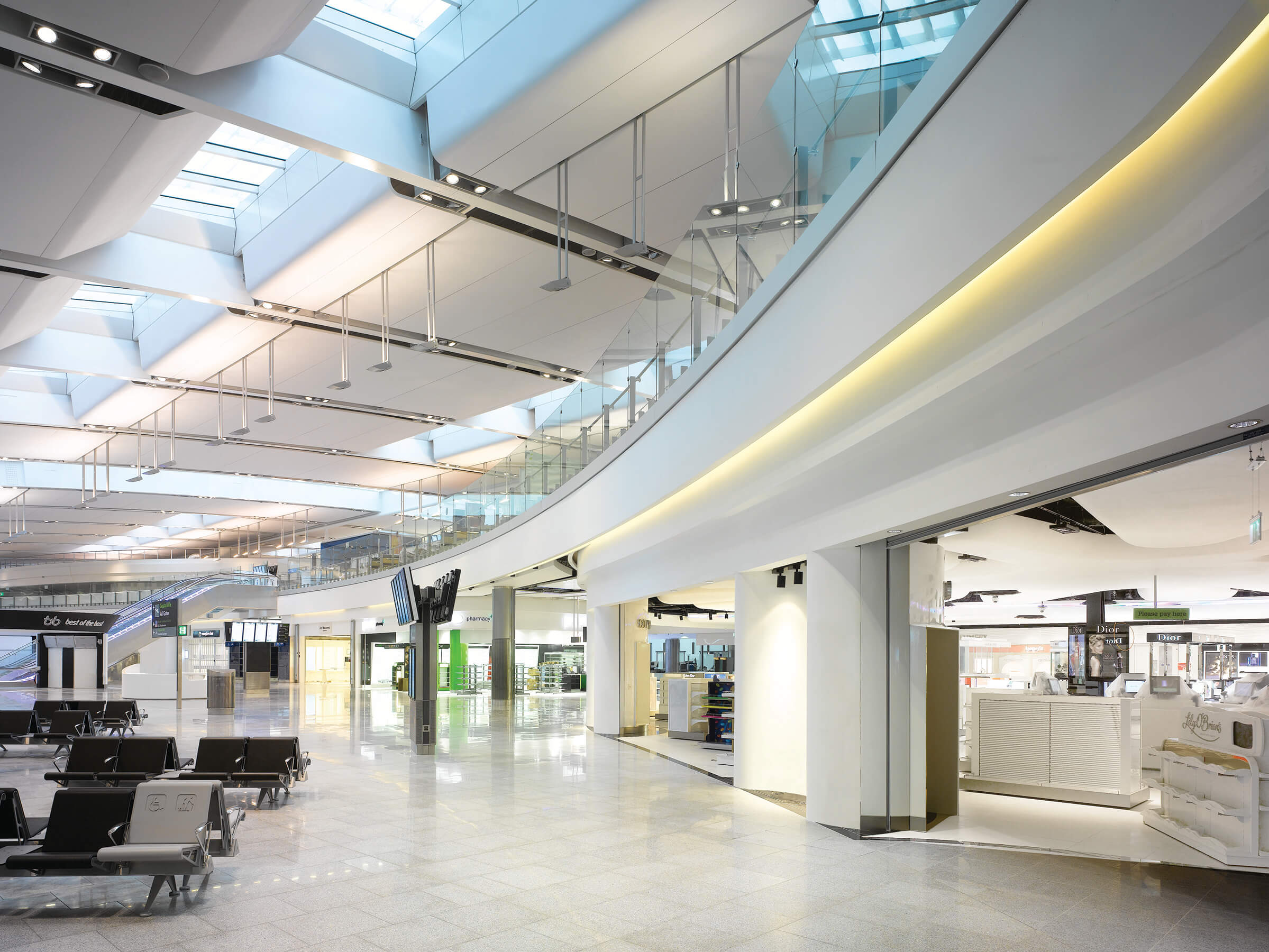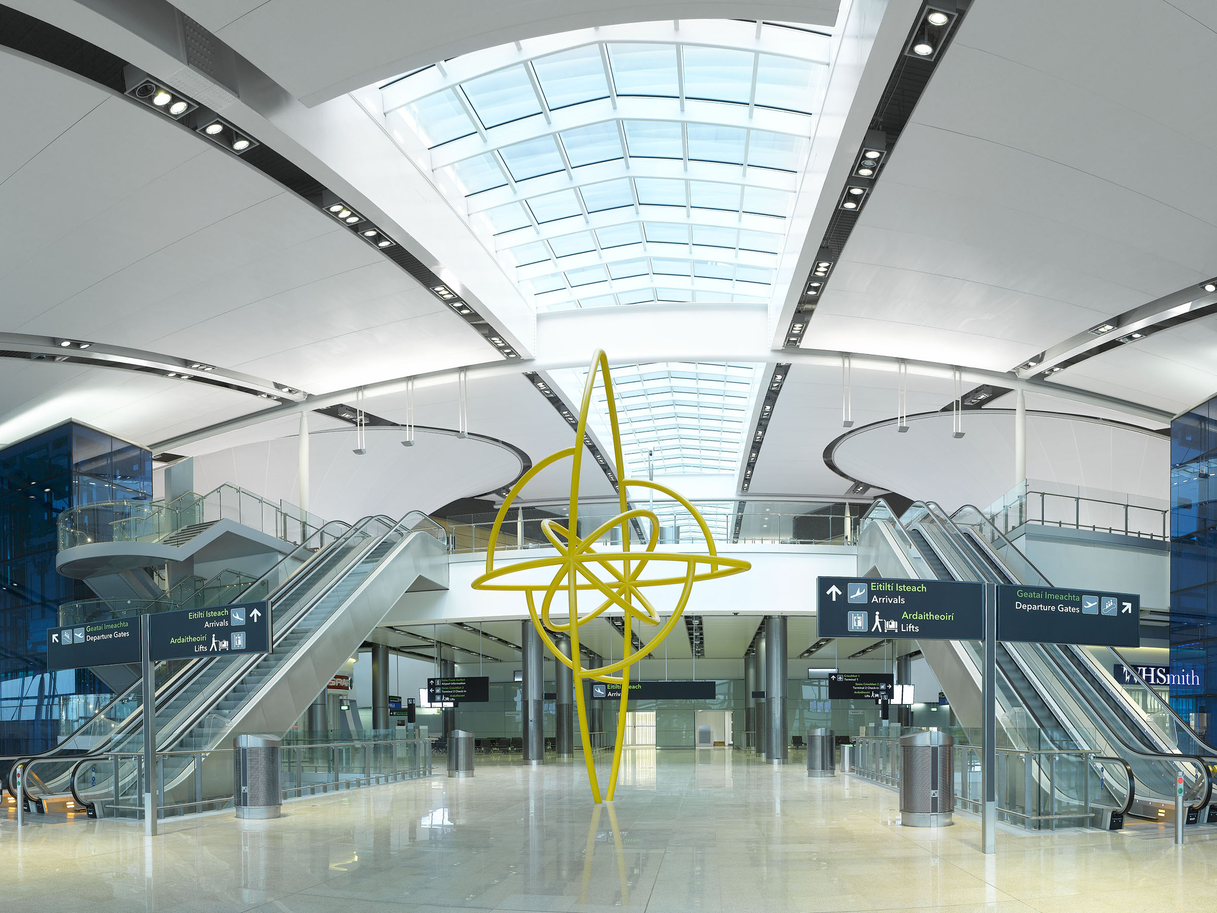 The comprehensive masterplan Pascall+Watson created for Dublin Airport in 2005 considered over 100 individual projects. The new 75,000m² Terminal 2, which Pascall+Watson led from concept through to completion, forms the centrepiece of Dublin Airports’ extensive five-year investment programme. With a throughput of up to 15 million passengers per year, Terminal 2 has increased Dublin Airports’ capacity to 32 million, positioning it as one of the top 20 European airports for international traffic. Externally, the terminal is symbolic and sculptural, suggesting metaphors of flight. Despite its bespoke appearance, the free-flowing, fluid forms of the two main volumes have been created using only standard systems and componentry. Internally, consideration of passenger movement was a fundamental part of the design process ensuring logical and intuitive sequential journeys. The plan layout is responsive to operational requirements and the constraints of a particularly congested site. The building set new standards in sustainable terminal design, achieving a 17% reduction in CO² emissions when compared to statutory compliant design. Terminal 2 provides an iconic gateway to Ireland and has received numerous awards including the CMG Building Design Awards Public Building of the Year (2010) as voted by the general public.