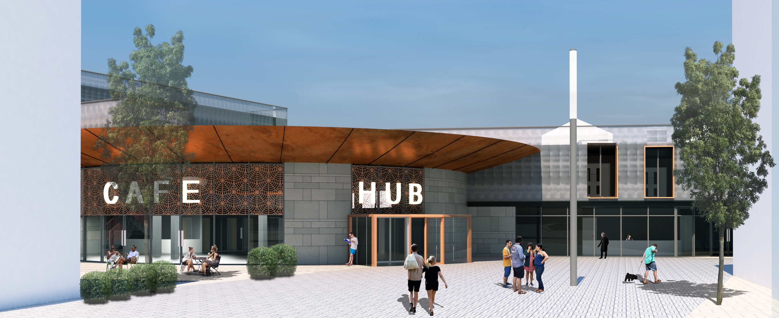 The Southborough Hub development near Tunbridge Wells in Kent is a significant urban regeneration scheme which will provide new landmark community facilities, including Library, Community Hall Theatre, Medical Centre, Town Council Offices and Café that will deliver a prominent new focus within Southborough Town Centre. This is an exciting opportunity to shape a stronger and more prosperous future for Southborough. The Community Hub building will bring together the community facilities required into a single hybrid building and will combine the main uses in defined areas of the building with a central hall for circulation and activity. The central hall is the main feature of the hub, with a curved roof extending beyond the building line to provide an entrance canopy to all approaches.