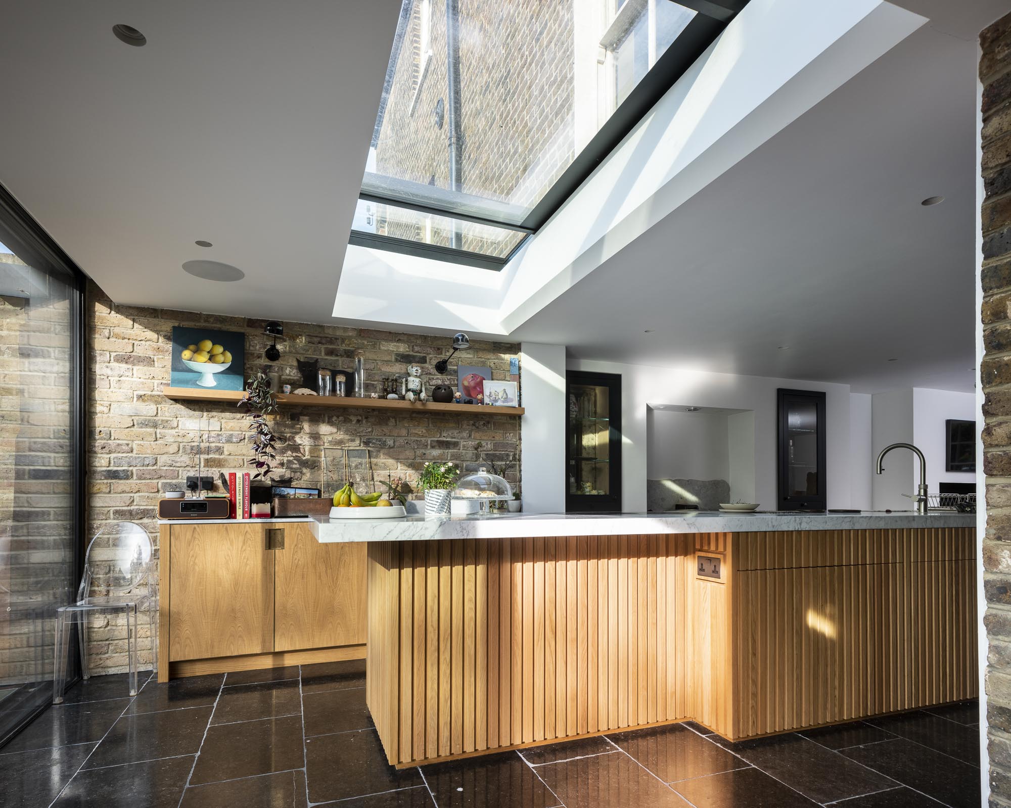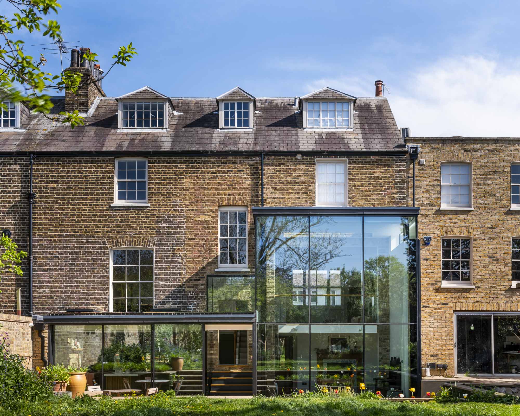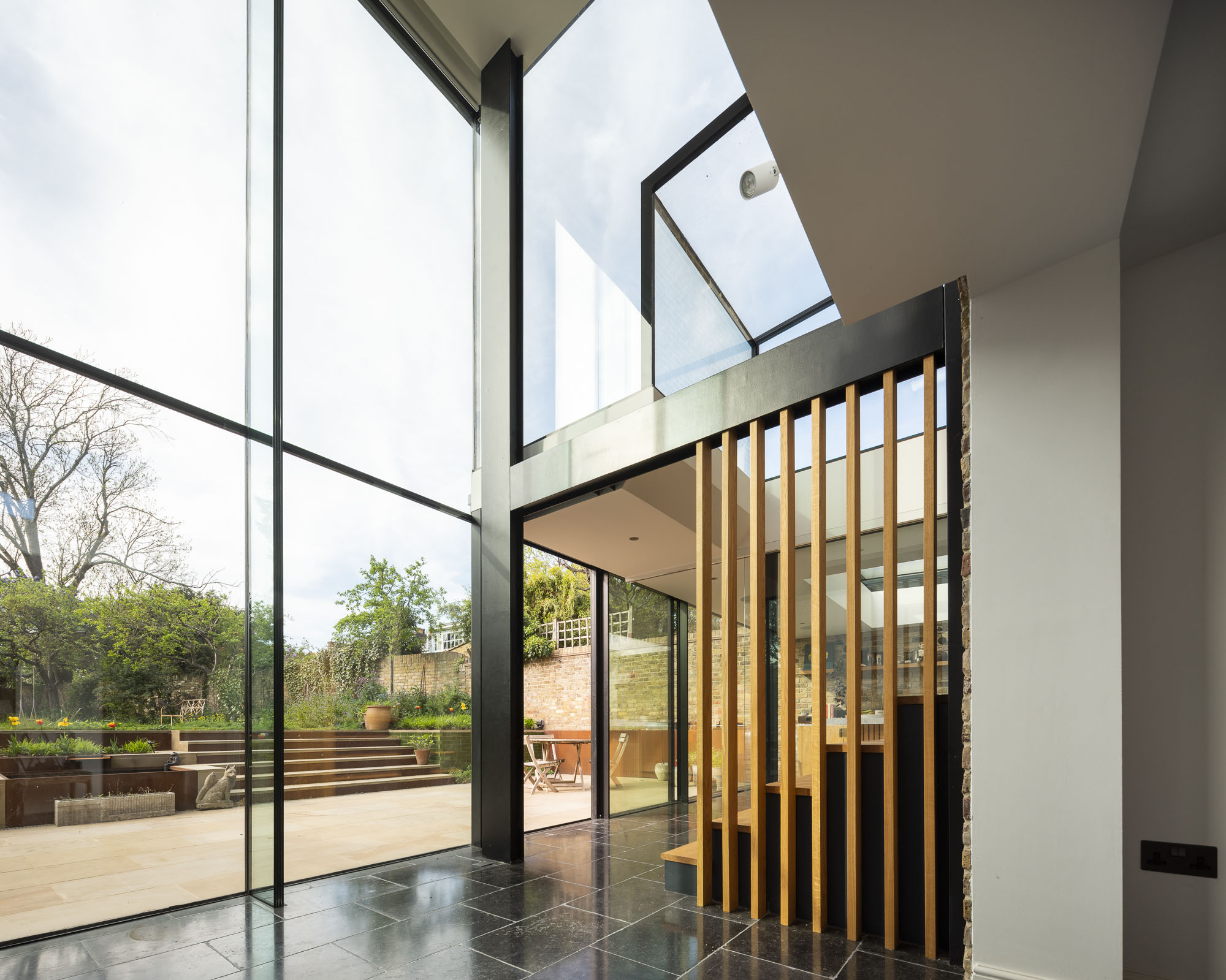 At Grove Park Terrace, we are completing a bold contemporary extension to a Grade 2 Listed Georgian villa. At the same time as building this exciting double height extension using structural glass, we have remodelled the interior of the house to create a more even flow of space throughout the house, and so achieving some dramatic new vistas on to the garden.