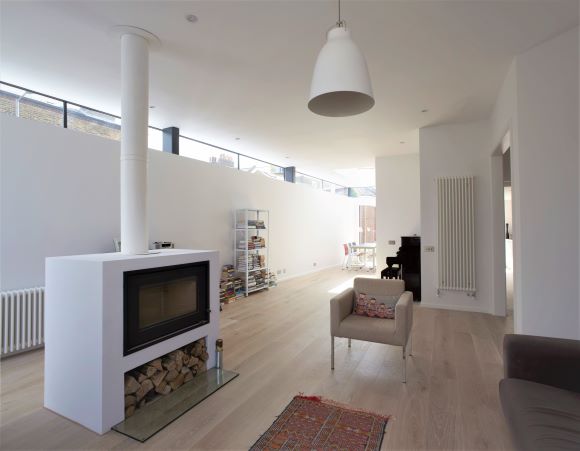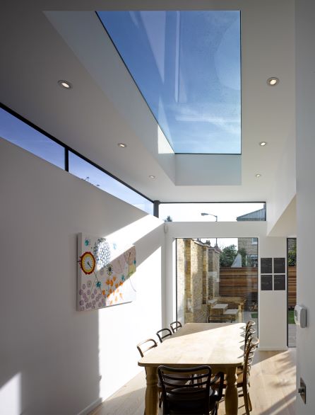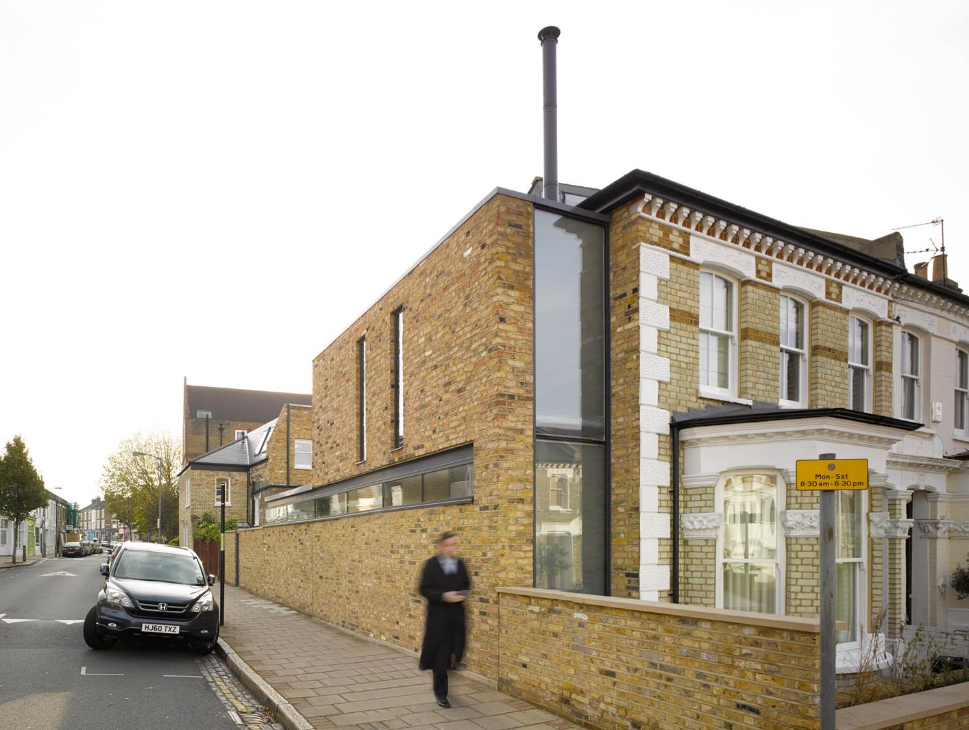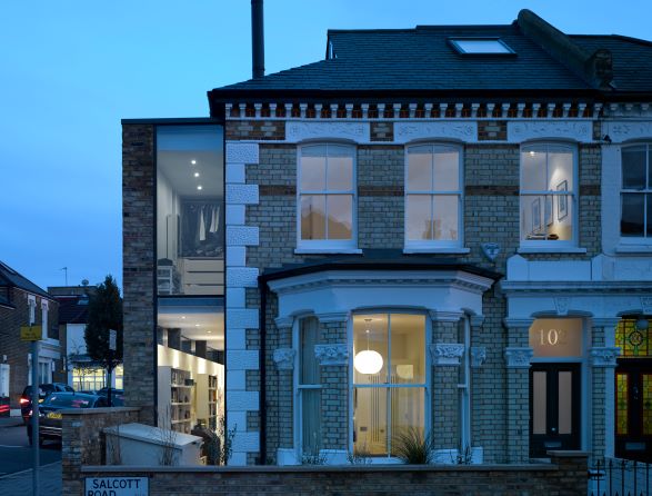 We have added a contemporary wing to the side of this end-of-terrace house in Battersea. This new extension, both at ground and first-floor level has dramatically increased the space within the house and has created some dynamic new open-plan accommodation. An exposed steel beam and a band of clerestory glazing separate the ground and first-floor extensions and make a strong feature along the new flank wall.