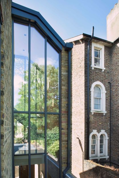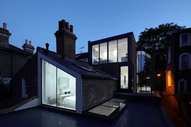 Development project to extend and remodel a Victorian house in Wimbledon, London. Extensive use of glass to provide natural light to all floors, including a new basement, Ground floor extension and enlarged loft. We had an interesting opportunity with this project to take the staircase out of the house altogether, thus freeing up space internally, and to construct a new stair tower on the side of the building. We chose to do the new staircase in steel and glass with fully glazed walls to both sides of the tower. The new tower is therefore a lightweight structure and allows natural light to pass right through the extension … and at the same time affording dynamic vistas to the north and south as one walks up and down the staircase. By removing the staircase for the internal core of the house, we have been free to use that space for useful accommodation, and therefore to make better us of the space within the house. We have modernised the house comprehensively and introduce large areas of glazing to bring as much light into the property as possible.