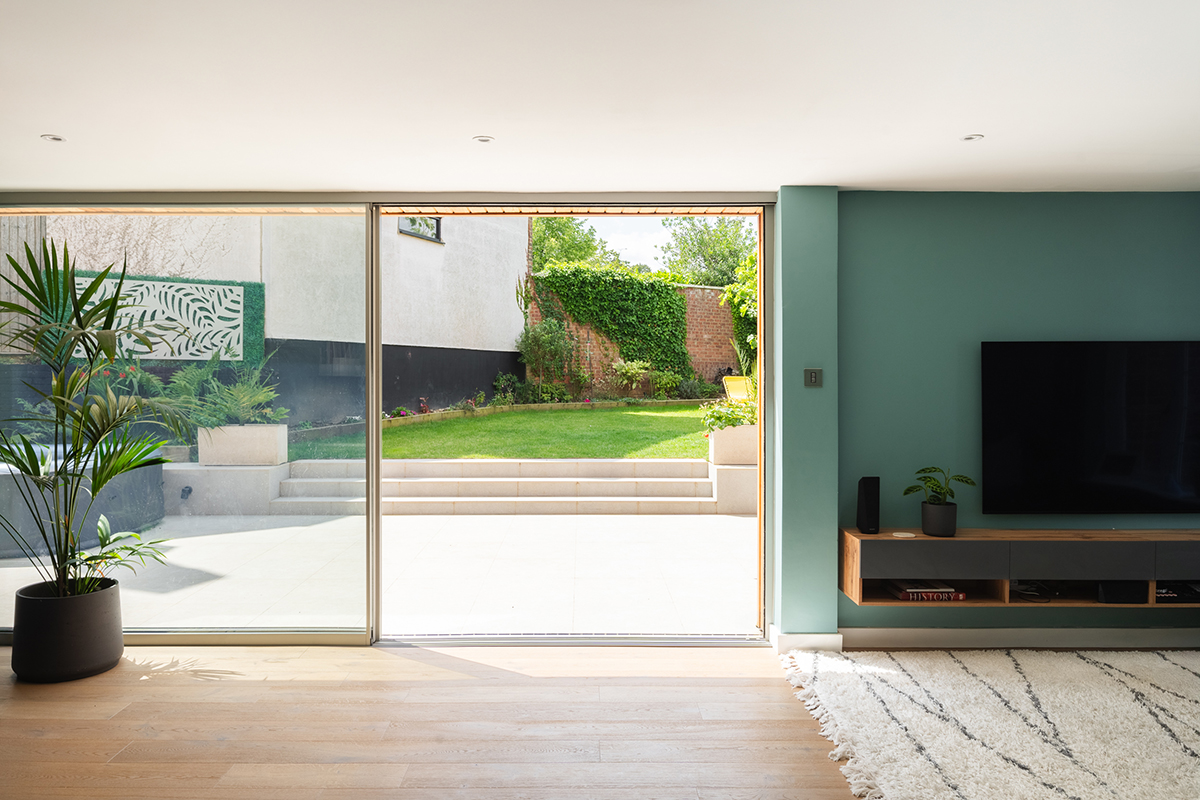 The extension and new cladding completely transformed this 1980’s house in Woodford Green. The project’s objective was not only to enlarge the property, but to transform this 1980s house lacking character into a unique home. The original architecture featured a common combination of red brick facades, white uPVC windows and concrete roof tiles. There was a missed opportunity in the complete absence of a relationship with the garden located at the side of the property. With the garden elevated above the internal floor level, a narrow path around the house served as a ditch, making access to the garden uncomfortable. When the property was extended, rather than replicating its original character, a new design was conceived for both the extension and the main building. Vertical larch cladding was used to create a cohesive look between the extension and the original structure. Large sliding pocket doors open the house up to the garden. A new generous patio, with wide steps that overcome the challenging topography, makes garden access easy. The external pocket doors fully disappear into the walls, creating unobstructed openings that seamlessly integrate the indoors with the outdoors, completely transforming what were once rooms with small windows that felt disconnected from the garden.