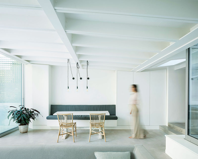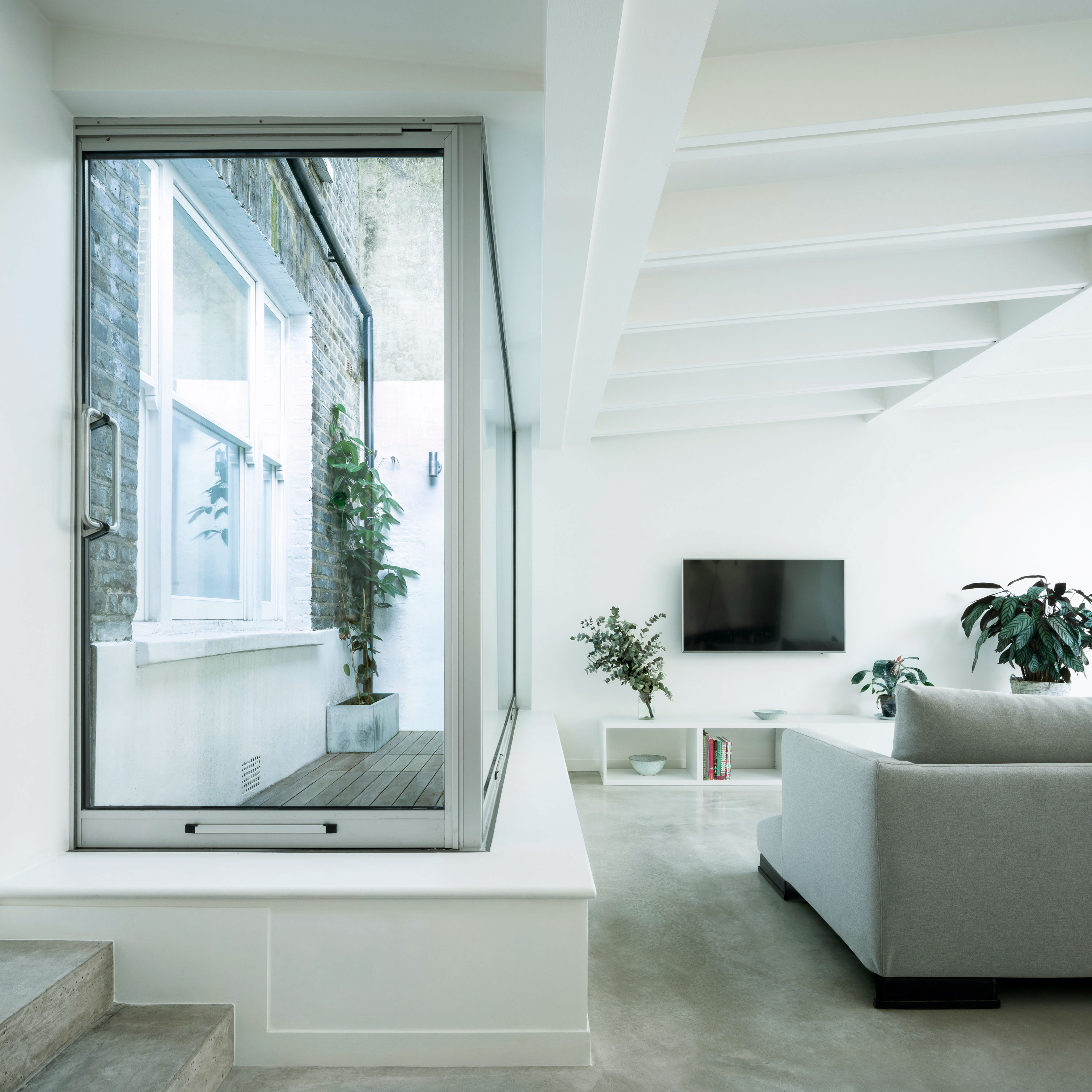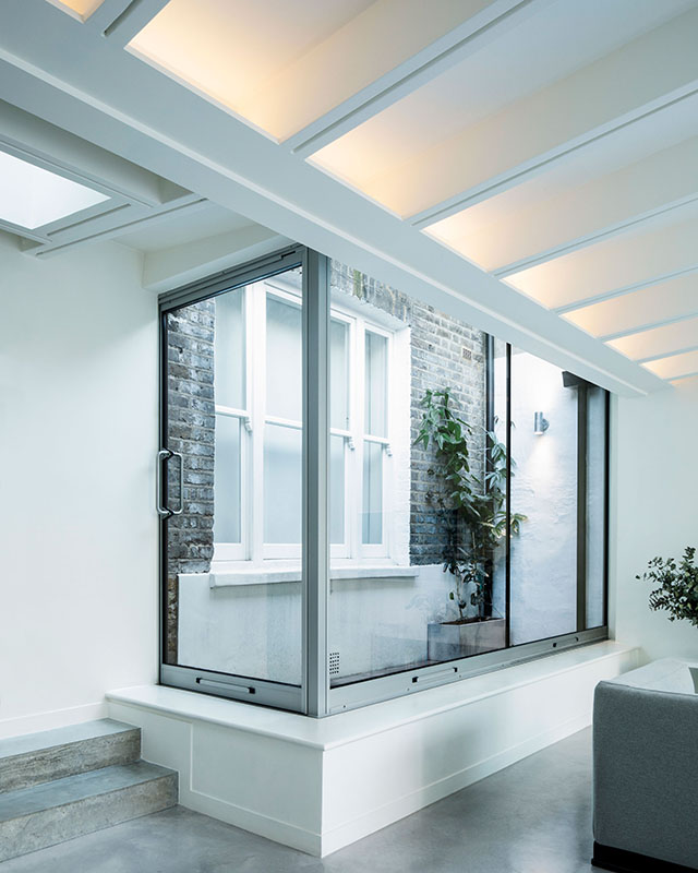 The brief was to extend into the garden and create a second bedroom to this large lower ground floor flat in East London. In order to retain adequate living space a large 6.0m rear extension was proposed. A glazed courtyard is created between the original rear elevation and the new garden pavilion, which permeates light and ventilation to the new bedroom. Despite the unprecedented size the high quality design has received welcome support from Hackney Planning Department following our pre-application submission.