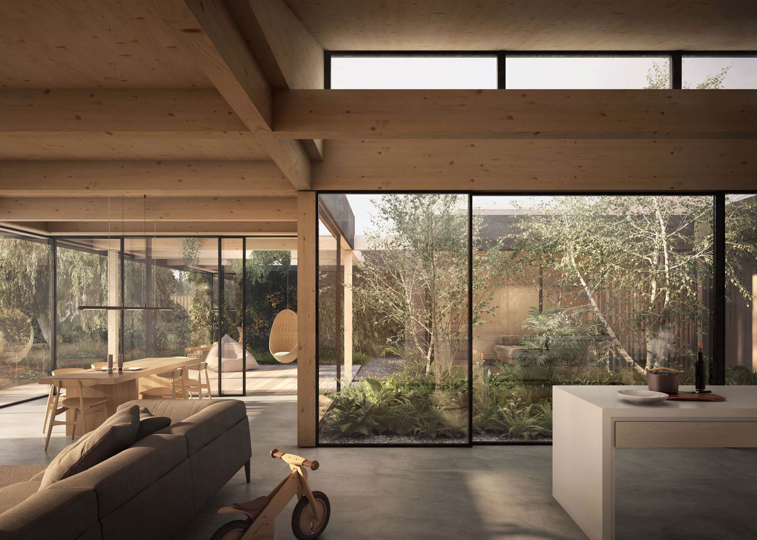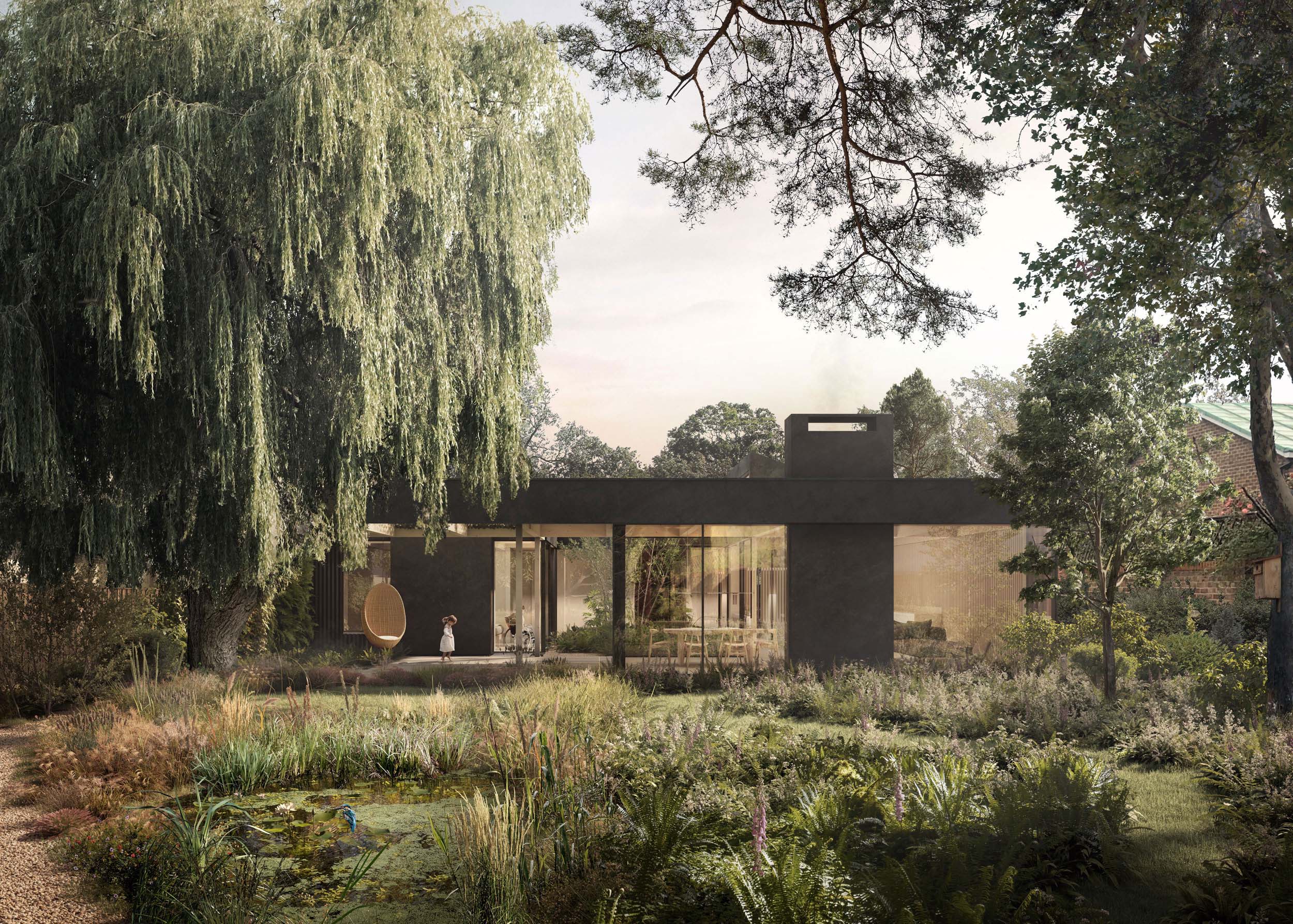A new-build low-energy home for a young family whose mother is a lifetime wheelchair user. The design brings a richly planted space to the heart of the home, forming a partially enclosed courtyard around which the principle living spaces are wrapped. This connection to nature is reinforced with extensive new landscaping schemes to the front and rear gardens and a green roof. Richmond, London.