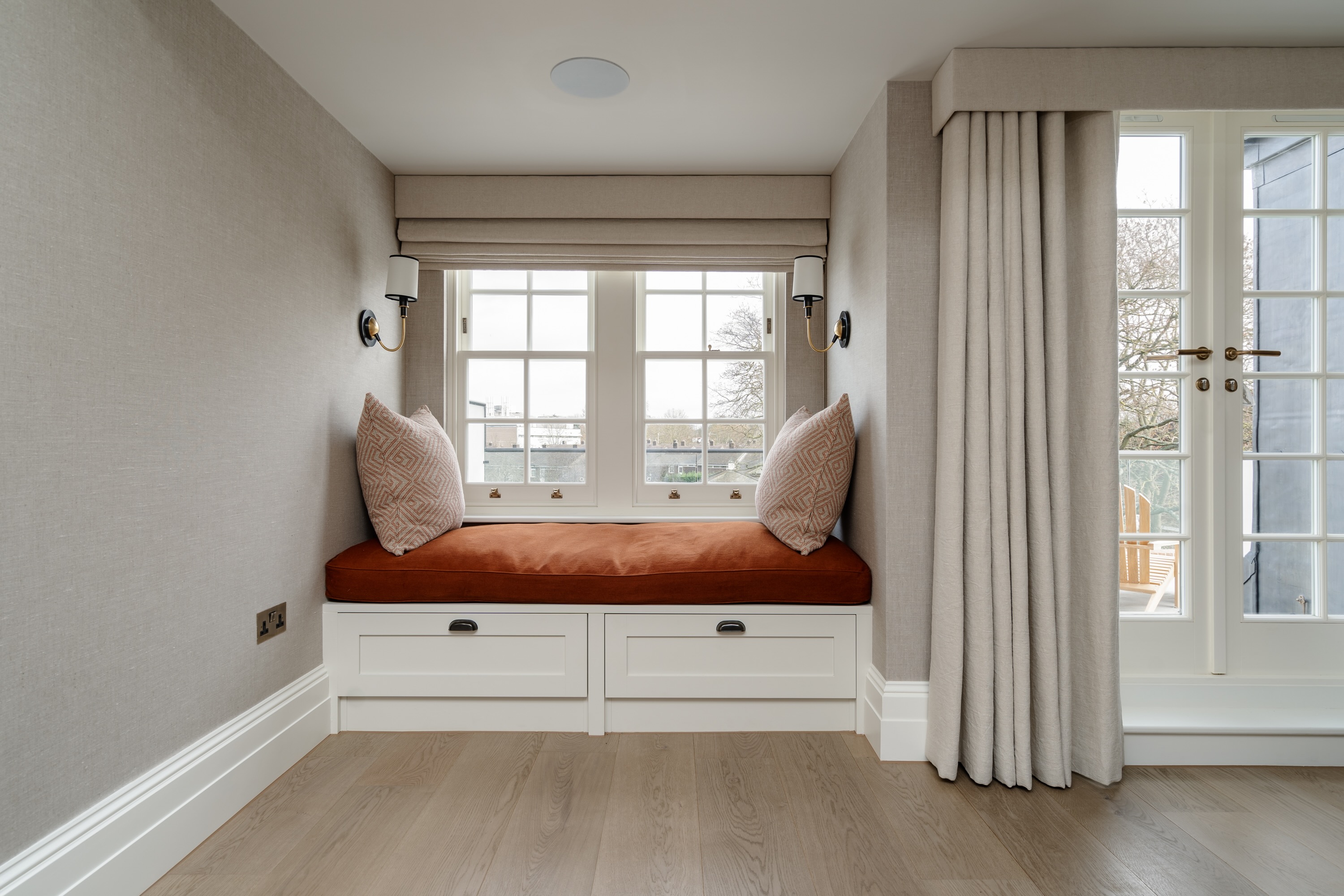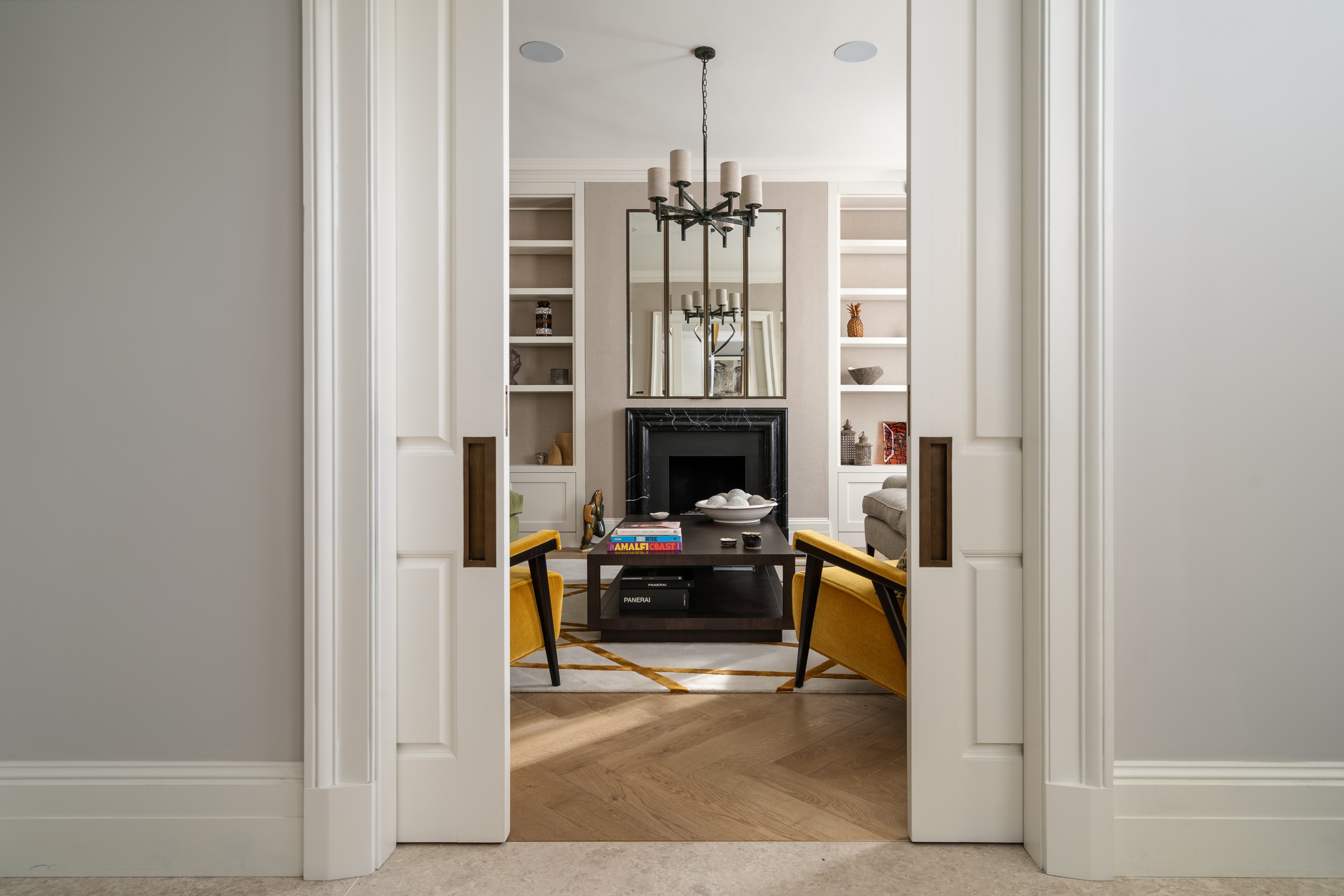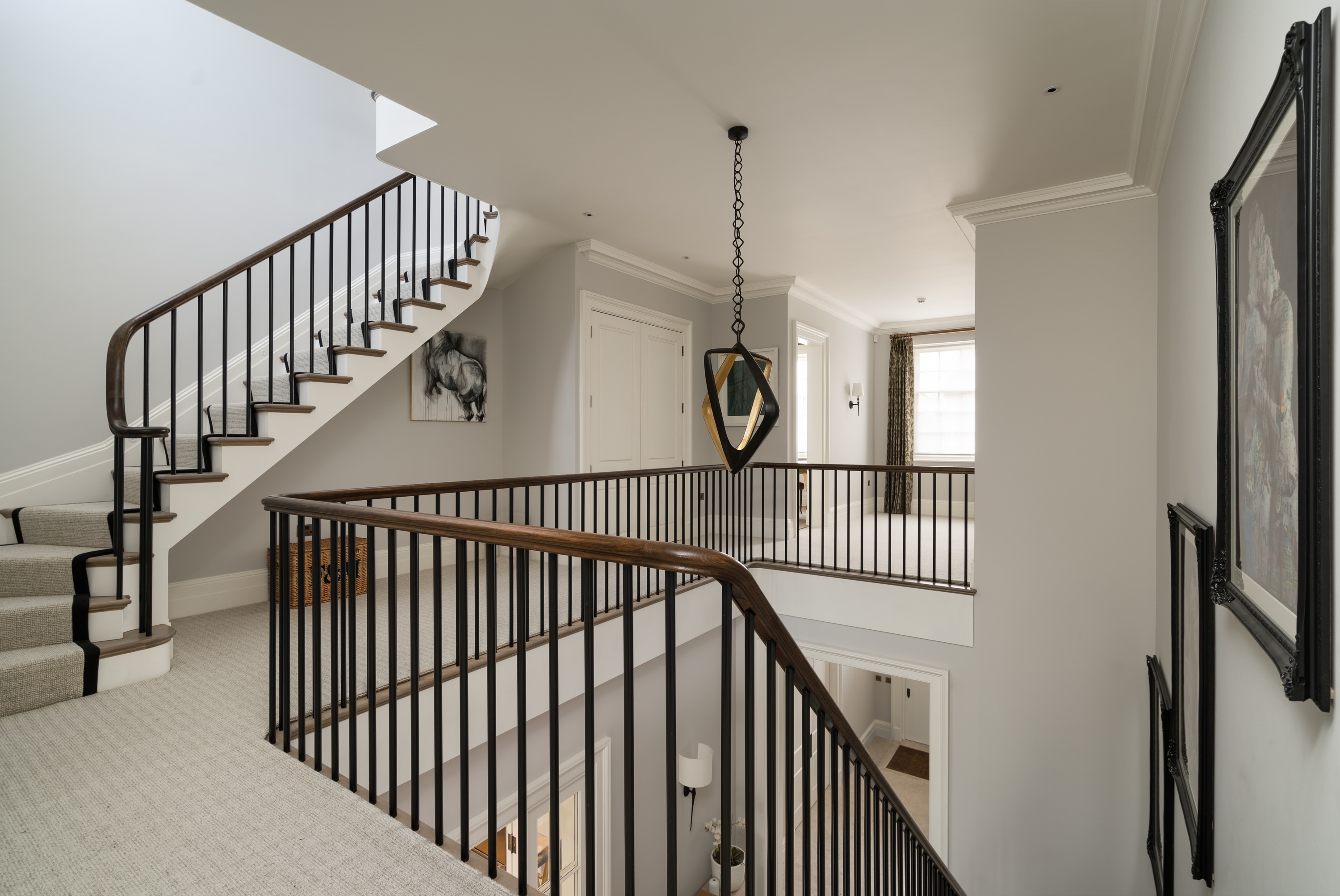 This three-storey detached home on the prestigious Dulwich Estate has been transformed into a connected, free-flowing family residence. The redesign delivers five bedroom suites—including a top-floor master with en-suite, dressing room, and roof terrace—two reception rooms, and a spacious open-plan kitchen, dining, and living area opening directly to the garden. A central balconied staircase replaces the original stairwell, linking all three floors and creating a seamless, light-filled flow. The basement now accommodates a gym, plant room, and storage, completing a modern, cohesive family home that balances functionality with refined architectural elegance.