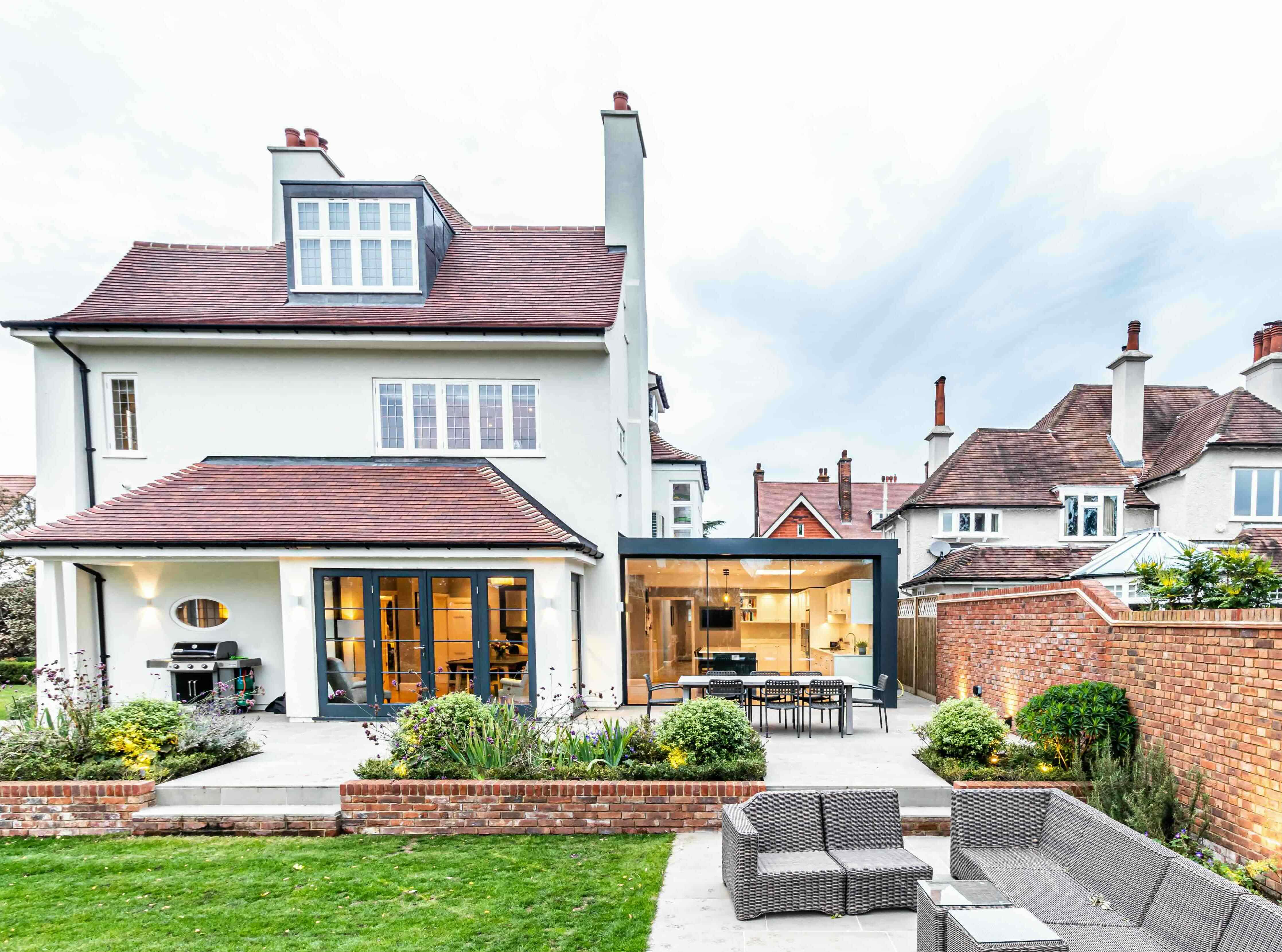 This locally listed Arts and Crafts home in Wimbledon Village, built in 1907 and influenced by Charles Voysey, was remodelled, refurbished, and extended to suit modern family living while respecting its historic character. A contemporary side extension, positioned in an underused part of the garden, introduces a light-filled kitchen and dining space with roof lights and sliding doors that connect seamlessly to the landscaped grounds. Inside, larger openings between rooms create a more open and flexible layout. Unsympathetic alterations were reversed, with original detailing restored through careful research and collaboration with conservation officers. The dominant 20th-century garage was rebuilt in a sympathetic style, ensuring it supports rather than competes with the architectural integrity of the main house.